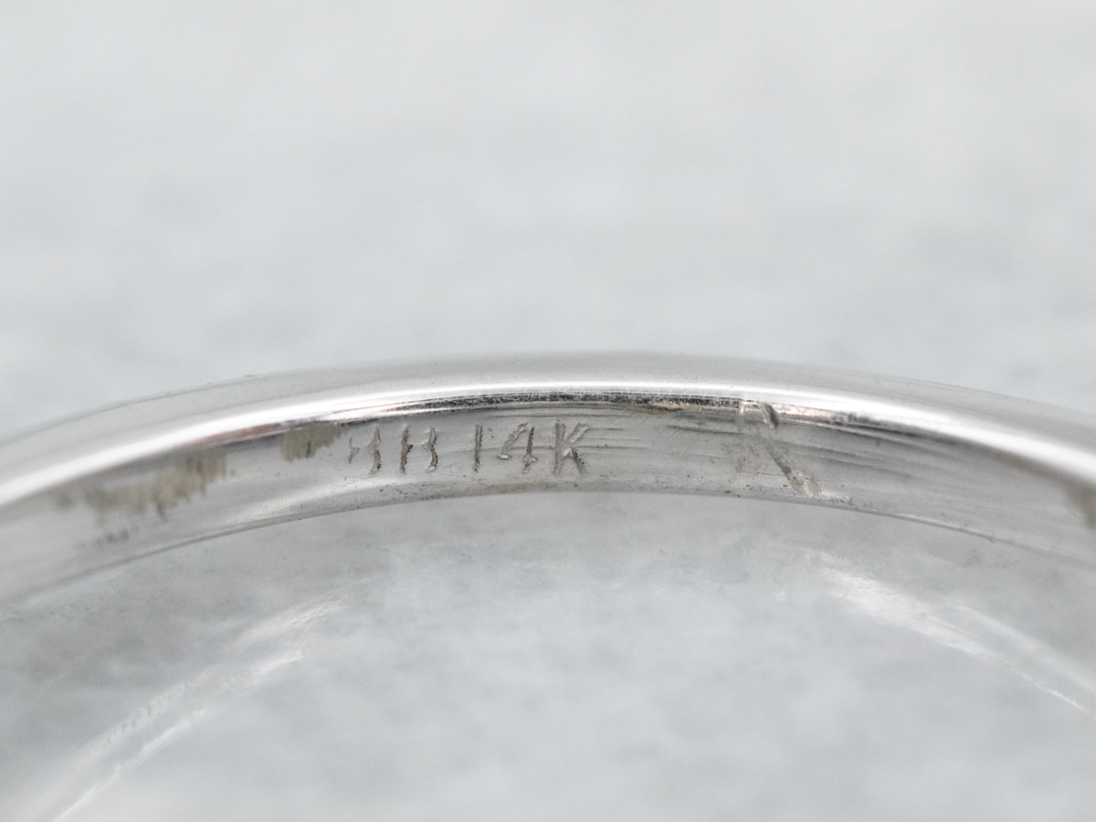 Metal: 14K White Gold Gem: Green Tourmaline 2.53 Carats Gem Measurements: 8.0 mm, Square Cushion Cut Accents: 43 Diamonds totaling .50 Carats, G-H in Color, SI in Clarity Ring Size: 5.50 Marks: "BB 14K" Stamped on the inside band