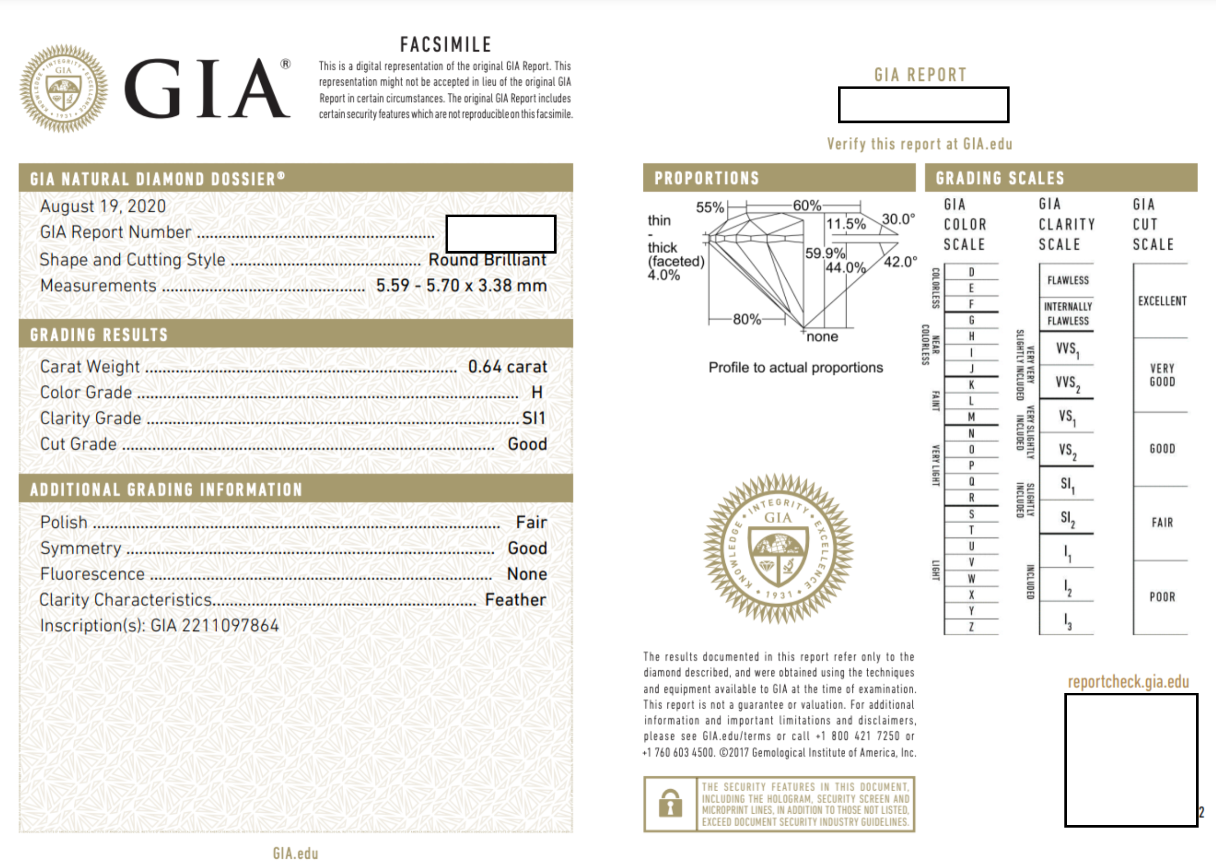 Metal: 18K Yellow Gold Gem: Diamond .64 Carats, H in Color, SI1 in Clarity Gem Measurements: 5.5 x 5.7 mm, Round Ring Size: 7.25 Marks: "<28VR><750>" Stamped on the inside band GIA Report Number: 221*********