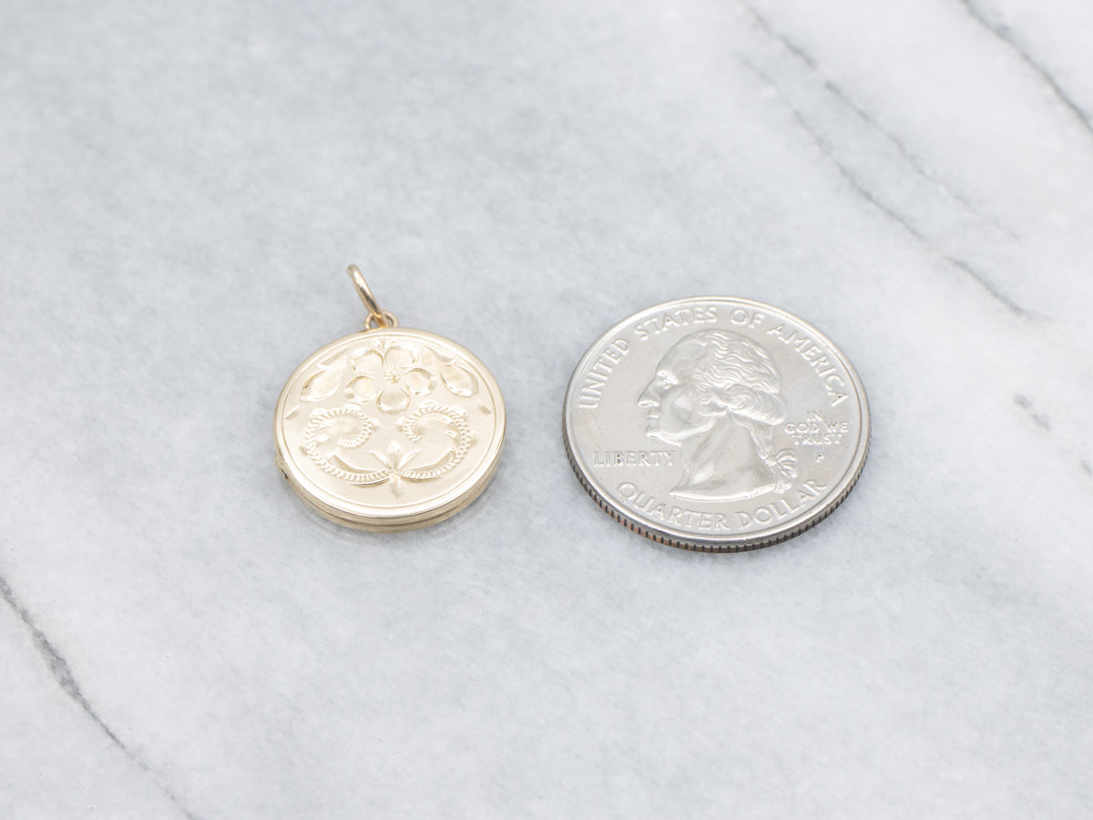 Vintage 14-Karat Yellow Gold Engraved Floral Circle Locket