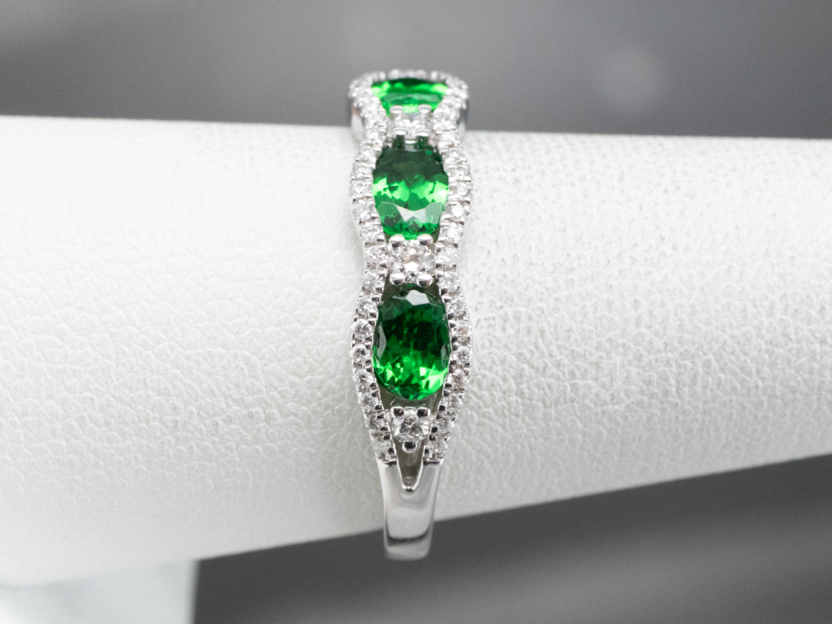 Tsavorite Garnet and Diamond Cocktail Band