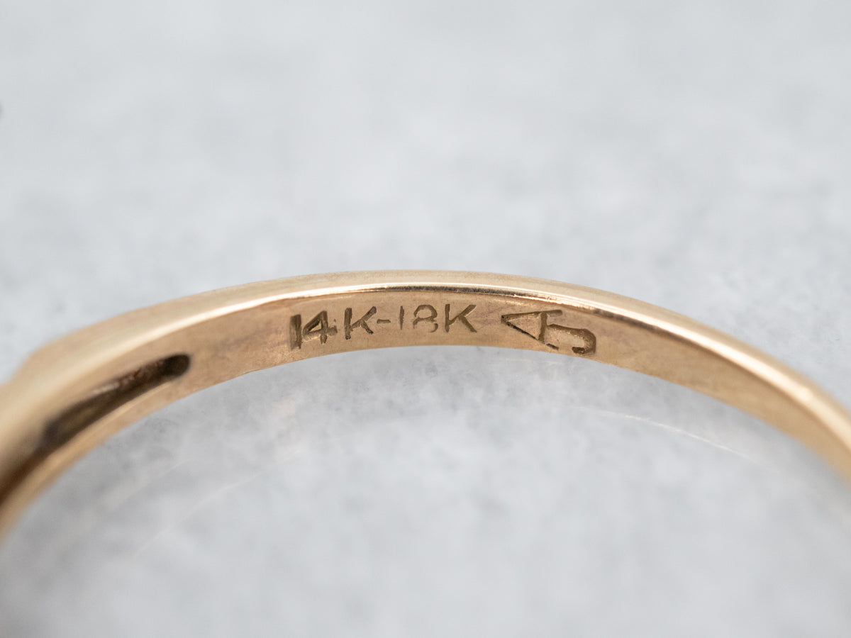 Metal: 14K Yellow Gold, 18K White Gold Gem: Diamond .28 Carats, SI1 in Clarity, H in Color Gem Measurements: 3.8 mm, Round Ring Size: 6.75 Marks: “14K-18K” Stamped on the inside band