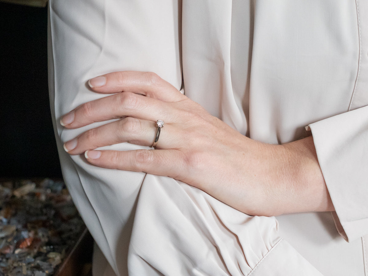 This elegant engagement ring is perfect for the special day. Crafted from white gold, it features a dazzling diamond center stone, expertly set in a solitaire setting. With its timeless design, this engagement ring is sure to last a lifetime.