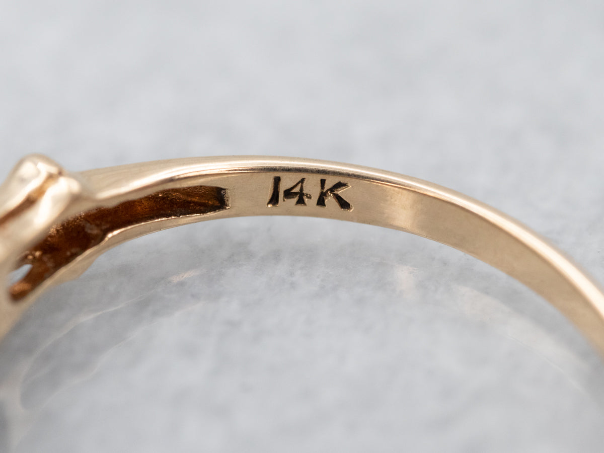 Metal: 14K Yellow Gold & White Gold Gem: Single Cut Diamond .11 Carats, K in Color, SI1 in Clarity Gem Measurements: 3.1 mm, Round Ring Size: 5.25 Marks: “14K” Stamped on the inside band