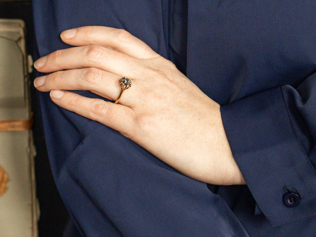 Antique Green Sapphire and Rose Cut Diamond Halo Ring