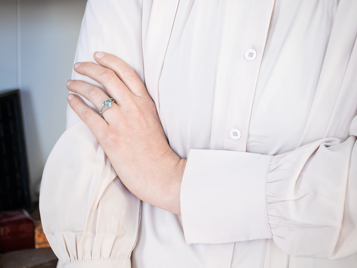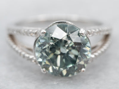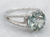 We've set this mounting of diamond-paved white gold with a substantial center stone! This blue zircon had an outstanding turquoise color with flashes of teal.