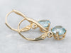 We've set two perfectly matched Blue Zircons in simple baskets of fine gold. These hang perfectly from secure, simply decorated lever-back findings. Elegant and yet substantial, these will transition easily from day to evening!