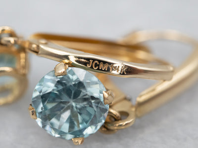 Metal: 14K Yellow Gold Gem: 2 Blue Zircons totaling 2.87 Carats Gem Measurements: 6.4 mm, Round Marks: "JCM 14K" Stamped on the Findings