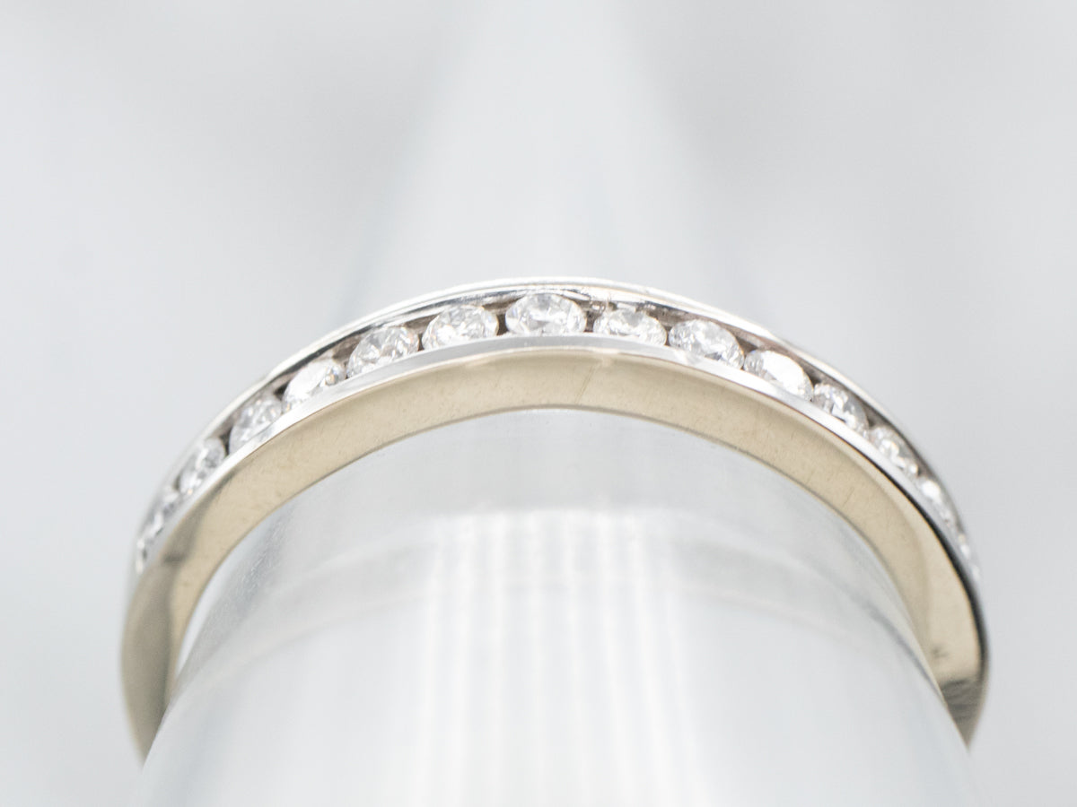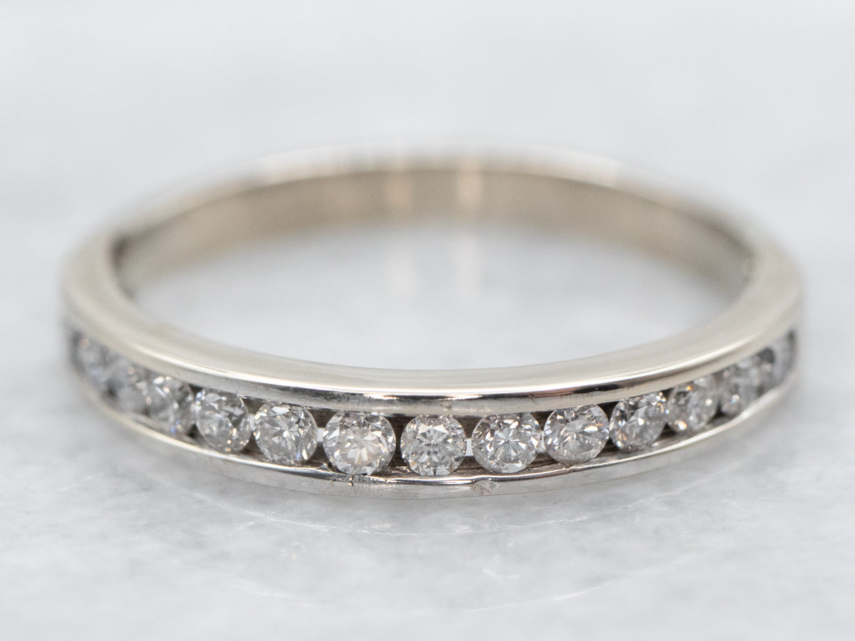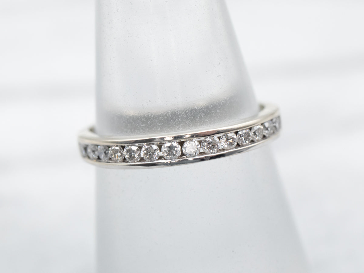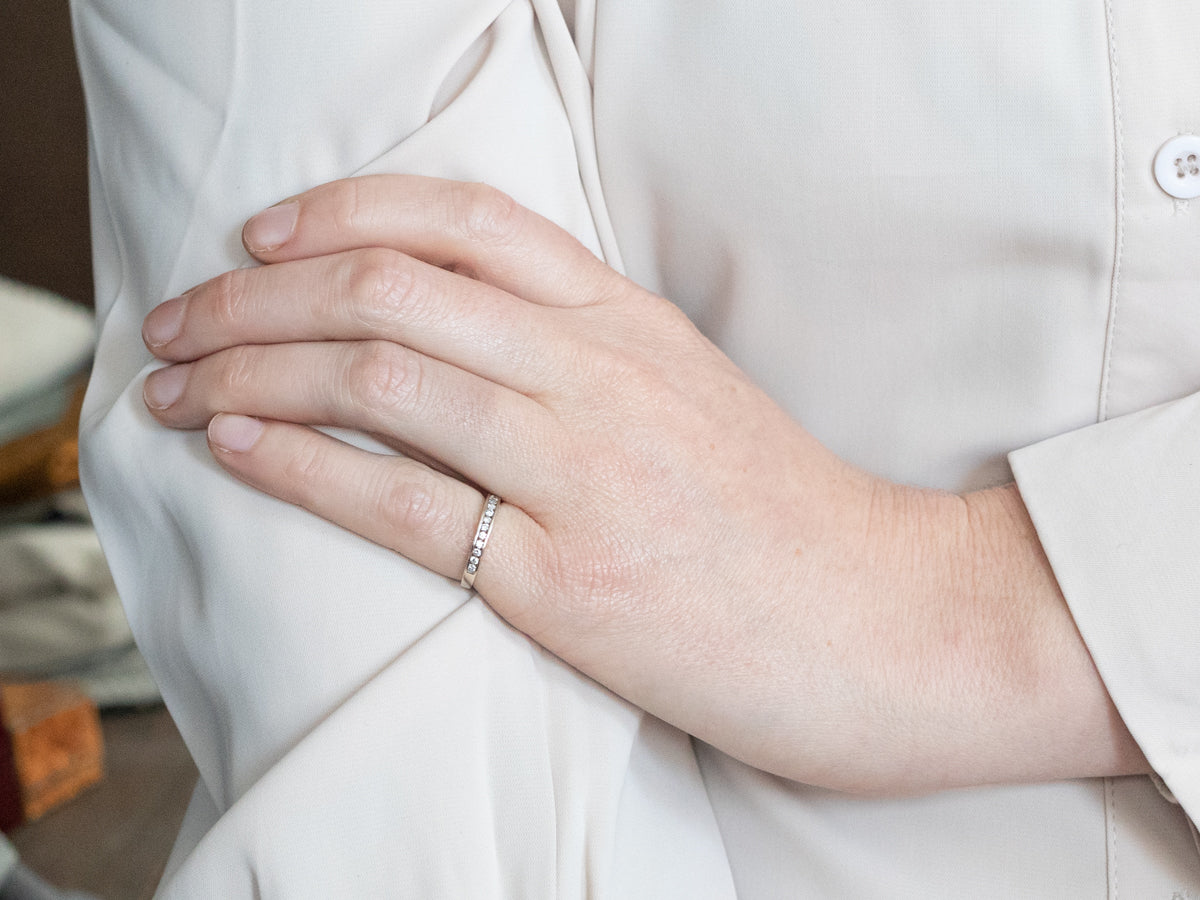 ¡La configuración del canal nunca pasa de moda! El efecto de una larga hilera de diamantes, una banda de luz brillante y brillante, a lo largo del dedo es siempre popular y encantador. Los lados del anillo encierran completamente los diamantes, manteniéndolos seguros y protegidos.