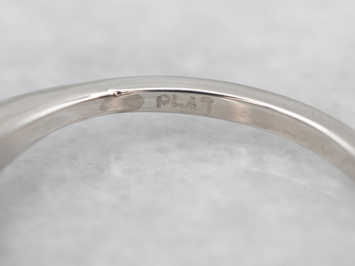 Metal: Platinum Gem: European Cut Diamond .29 Carats, H in Color, VS in Clarity Gem Measurements: 4.9 mm, Round Ring Size: 5.50 Marks: "PLAT" Stamped on the inside band