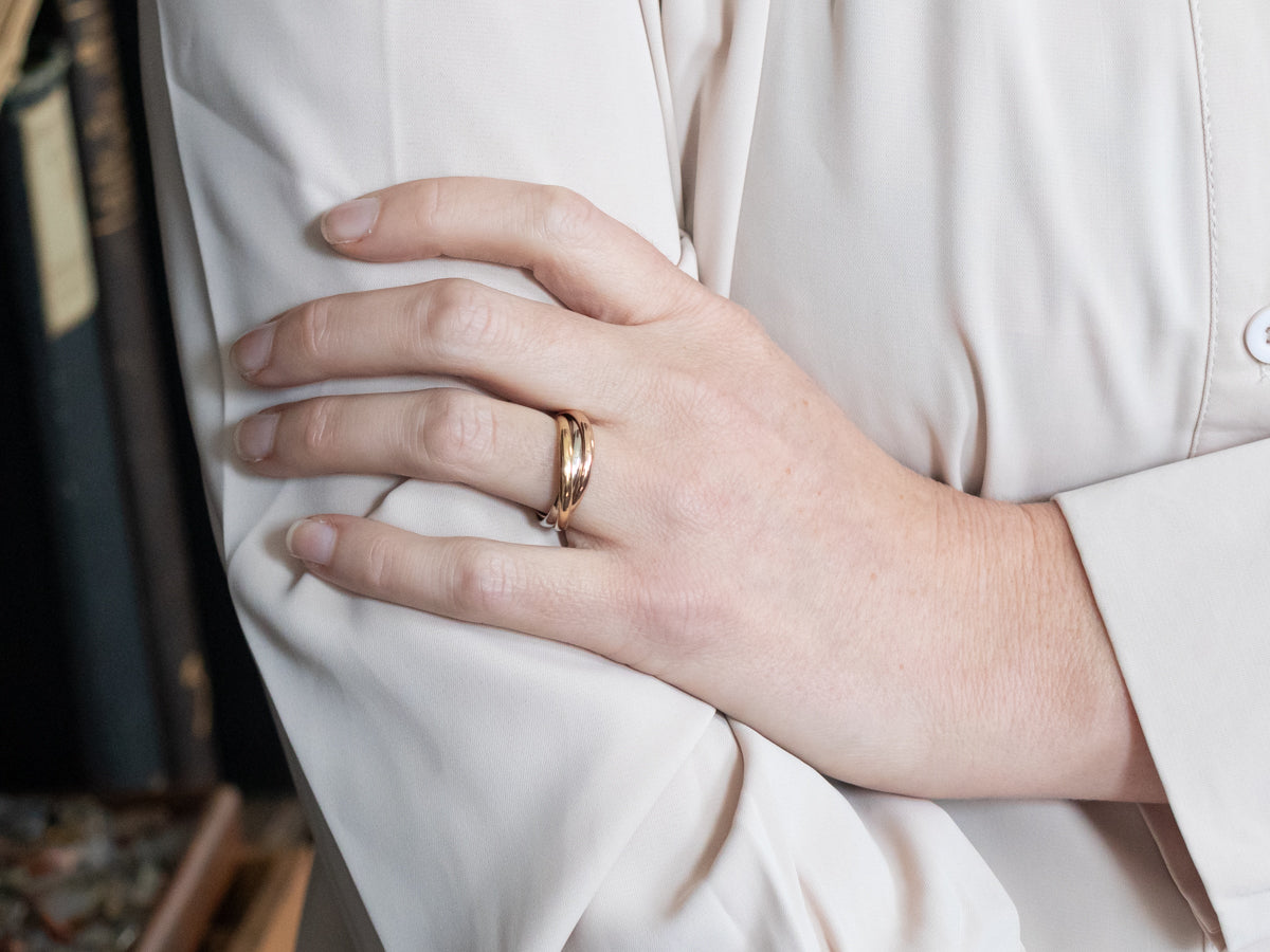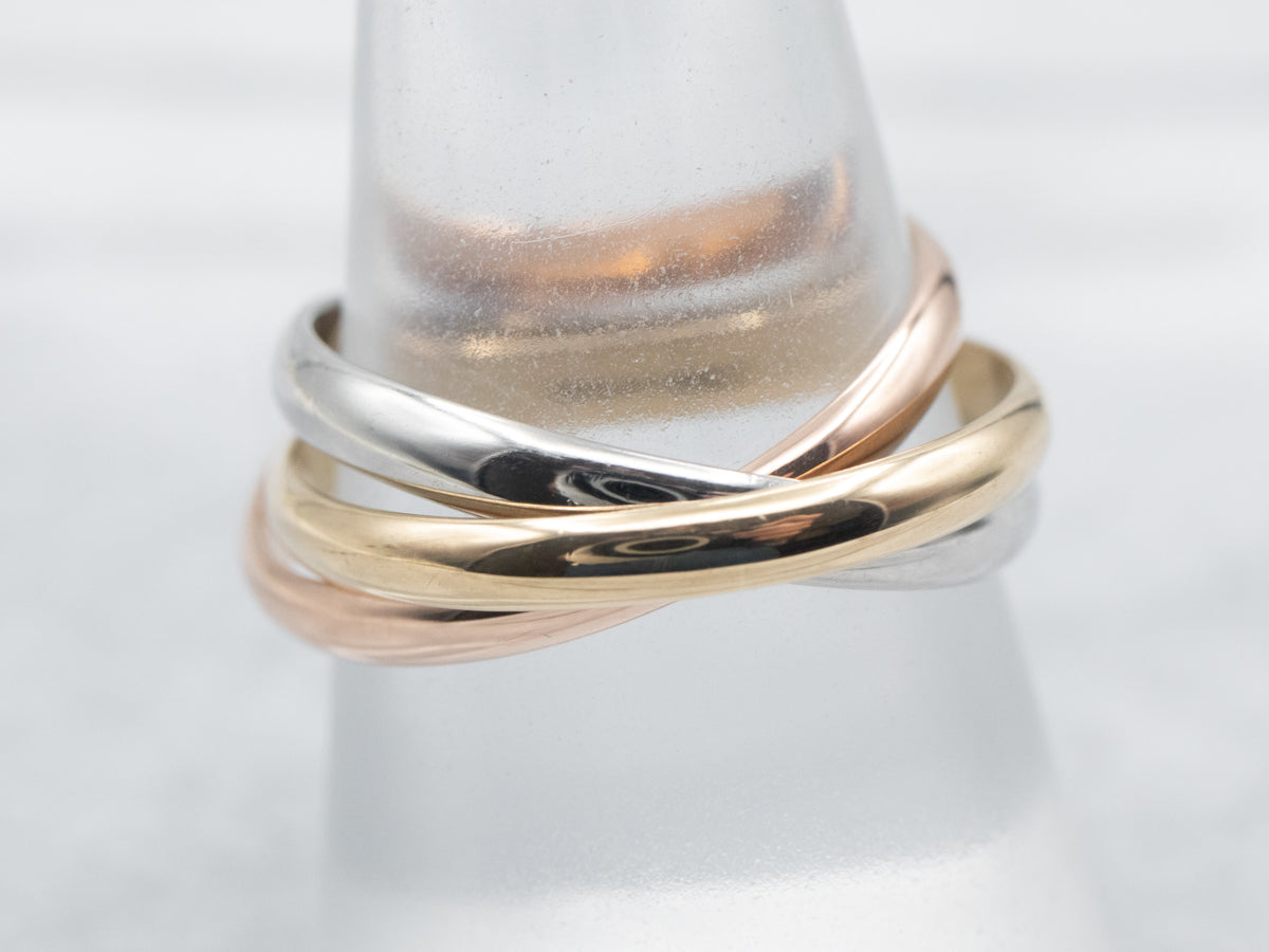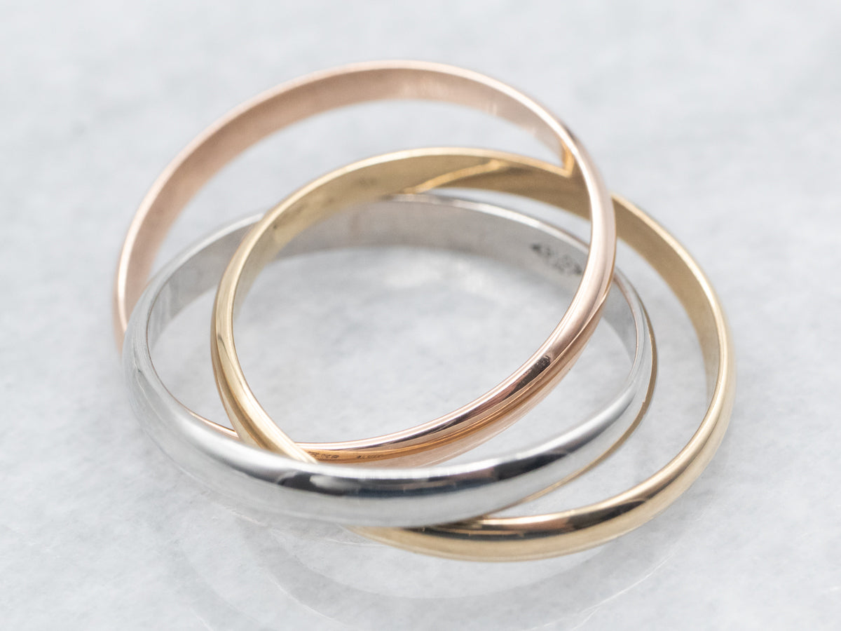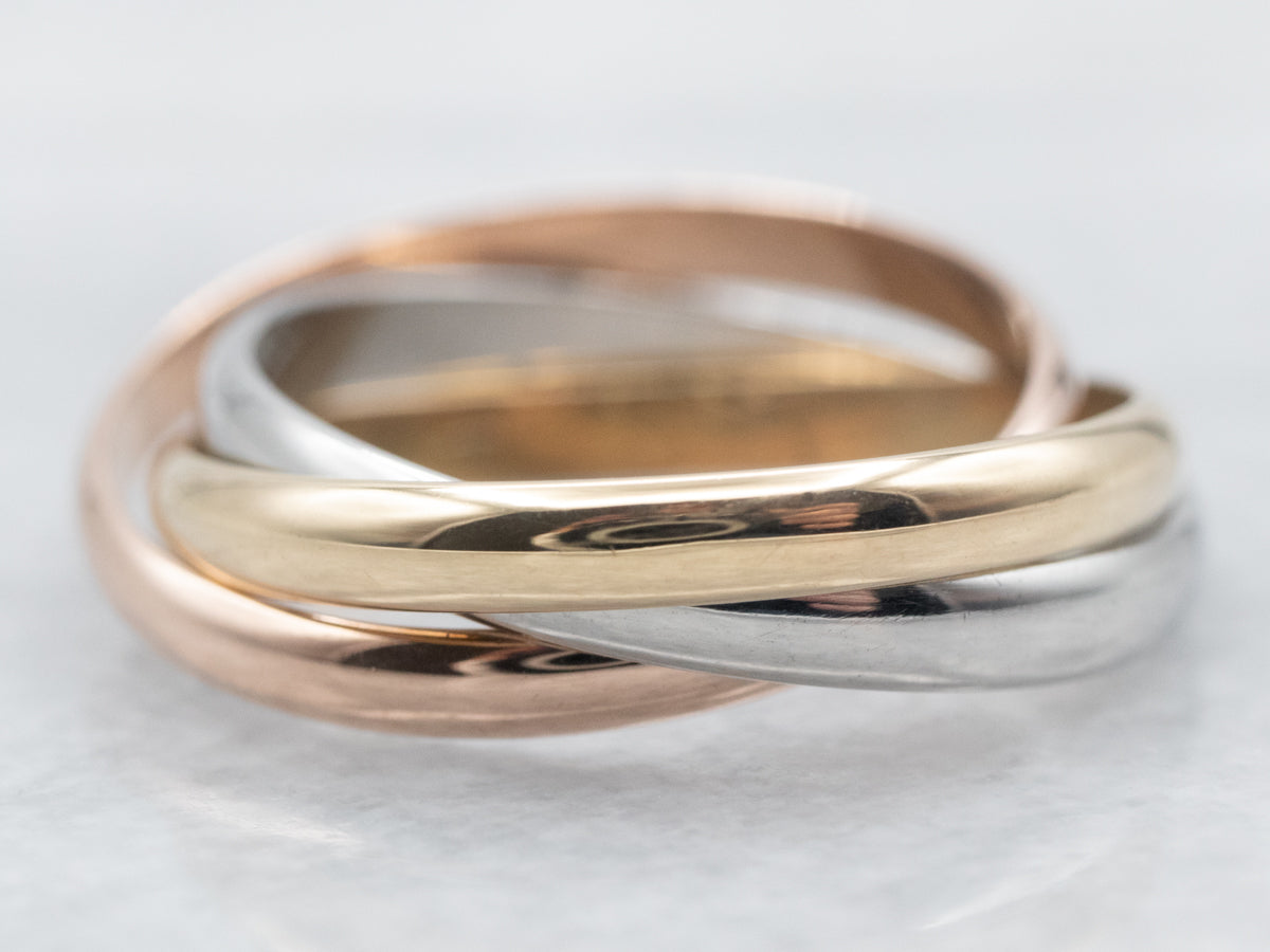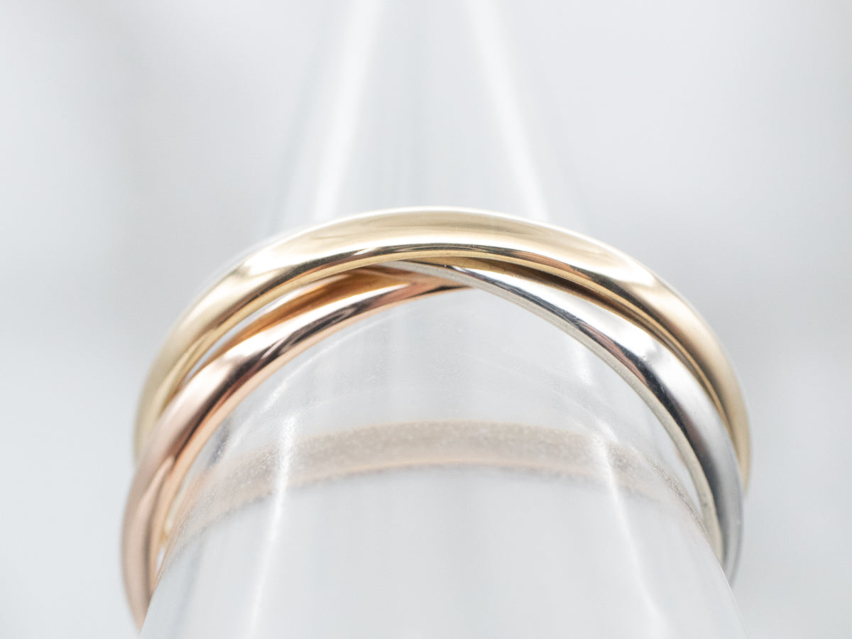 This exquisite band features three bands of different colors: platinum, yellow gold and rose gold. The combination of colors creates a seamless, timeless look, making this piece an all-round accessory for daily wear.
