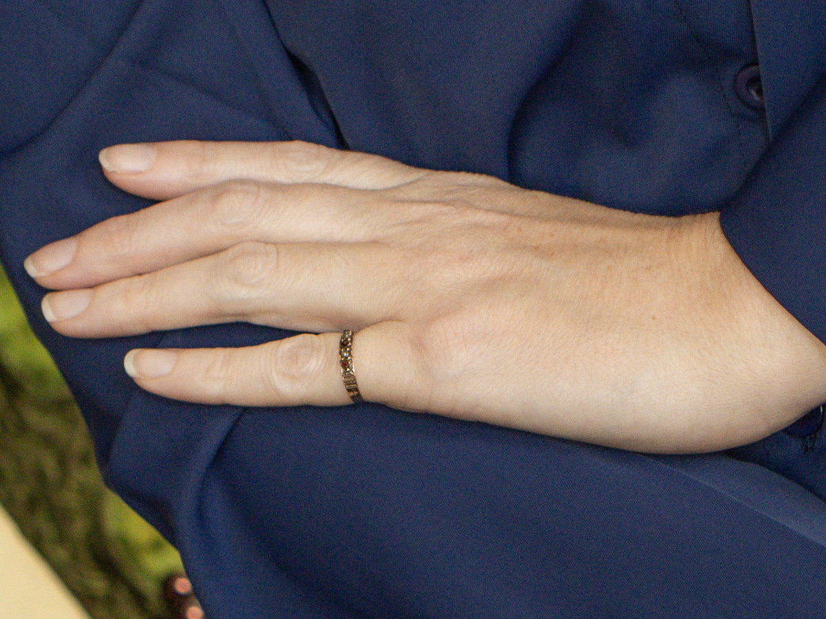 This is a pretty piece from the late 1800s. The gold is warm, with a pretty rose tint; a perfect compliment to the small, bright seed pearl at the center of the band. The accent garnets are a dark blood red hue with a wonderful, deep crimson sparkle.