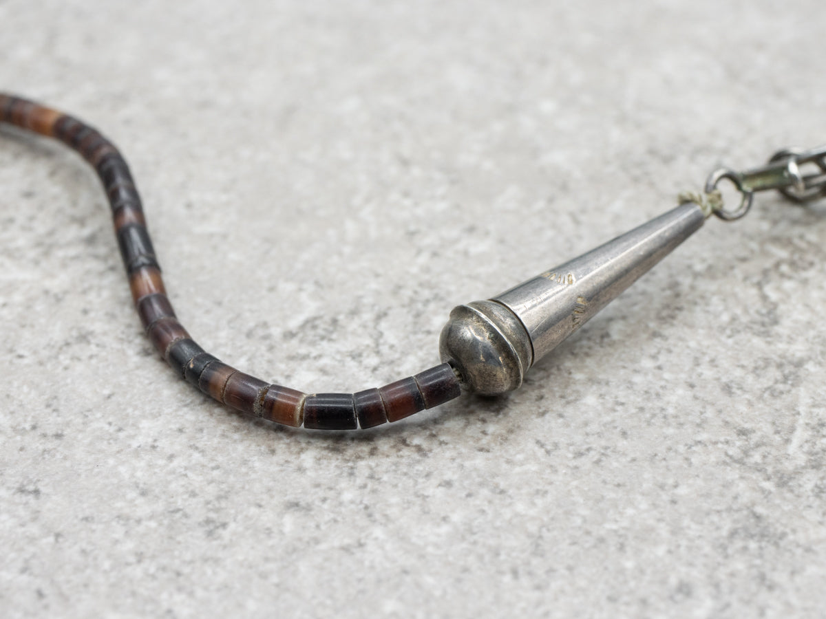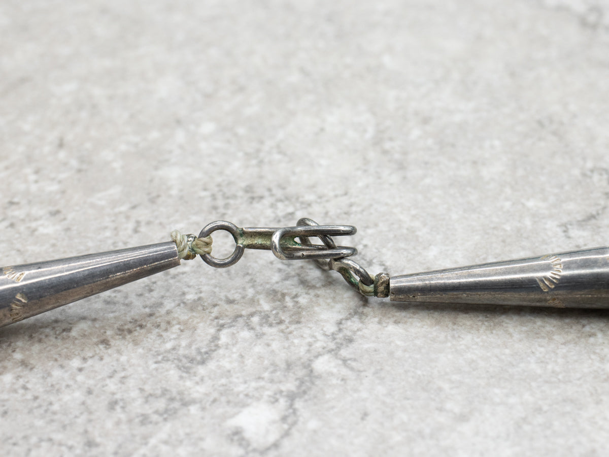 This piece features gorgeous turquoise nuggets in shades of green and teal! Strung on sterling silver wire with the original sterling silver caps, this vintage necklace is a wonderful collector's piece, with earthy-hued heishi shell forming the perfect accent to the turquoise.