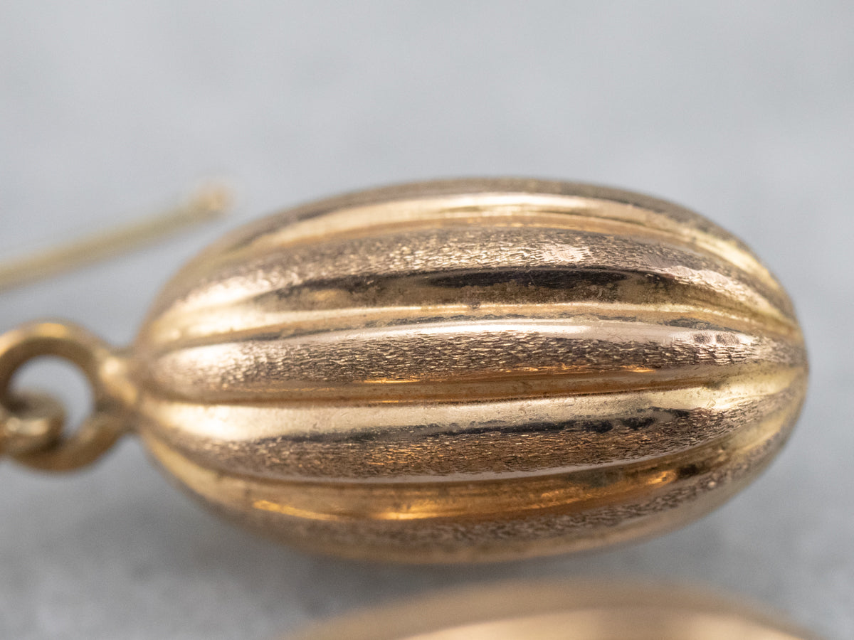 Metal: 22K Yellow Gold Gem: 2 Diamonds totaling .06 Carats, SI1 in Clarity, G in Color Gem Measurements: 1.7 mm, Round Earrings Length: 28 mm Earrings Width: 8 mm