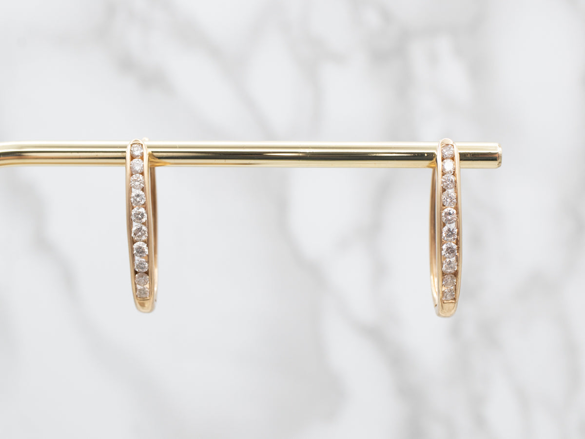 Estos aretes vintage son clásicos y fáciles de pasar del día a la noche. Los diamantes brillantes están engarzados de forma segura en un montaje de canal sin respaldo, creando una línea de luz en la línea de la mandíbula.