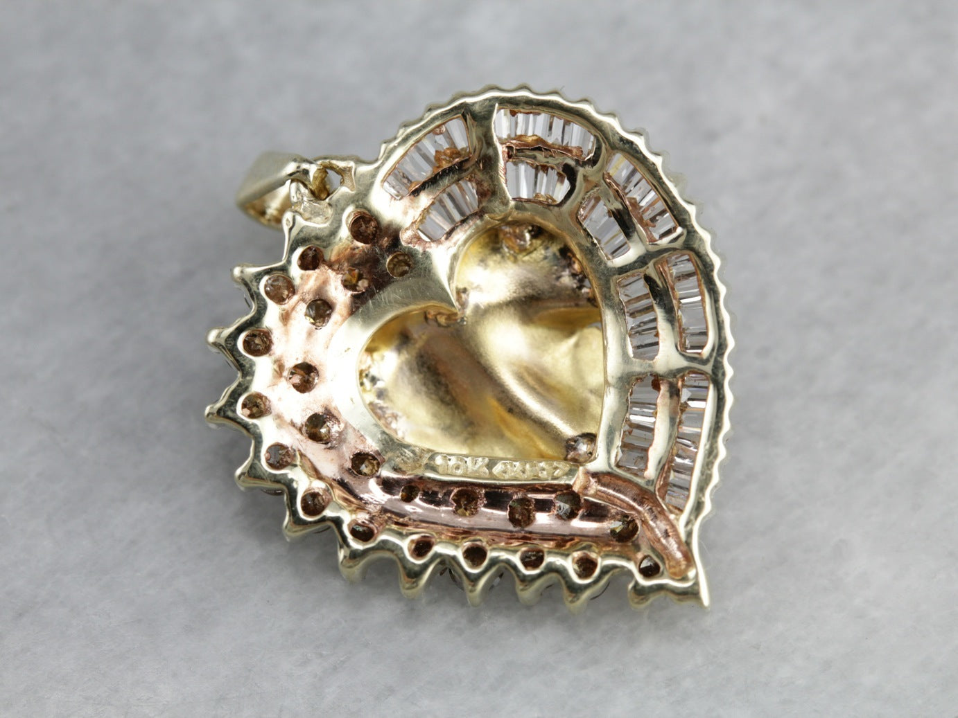 A sweet antique green garnet and gold leaf is given new life in this one of a kind pendant! We've set this gorgeous little gold piece on to a new frame. The diamond behind the leaf contrast the soft hue of the gold to perfection!