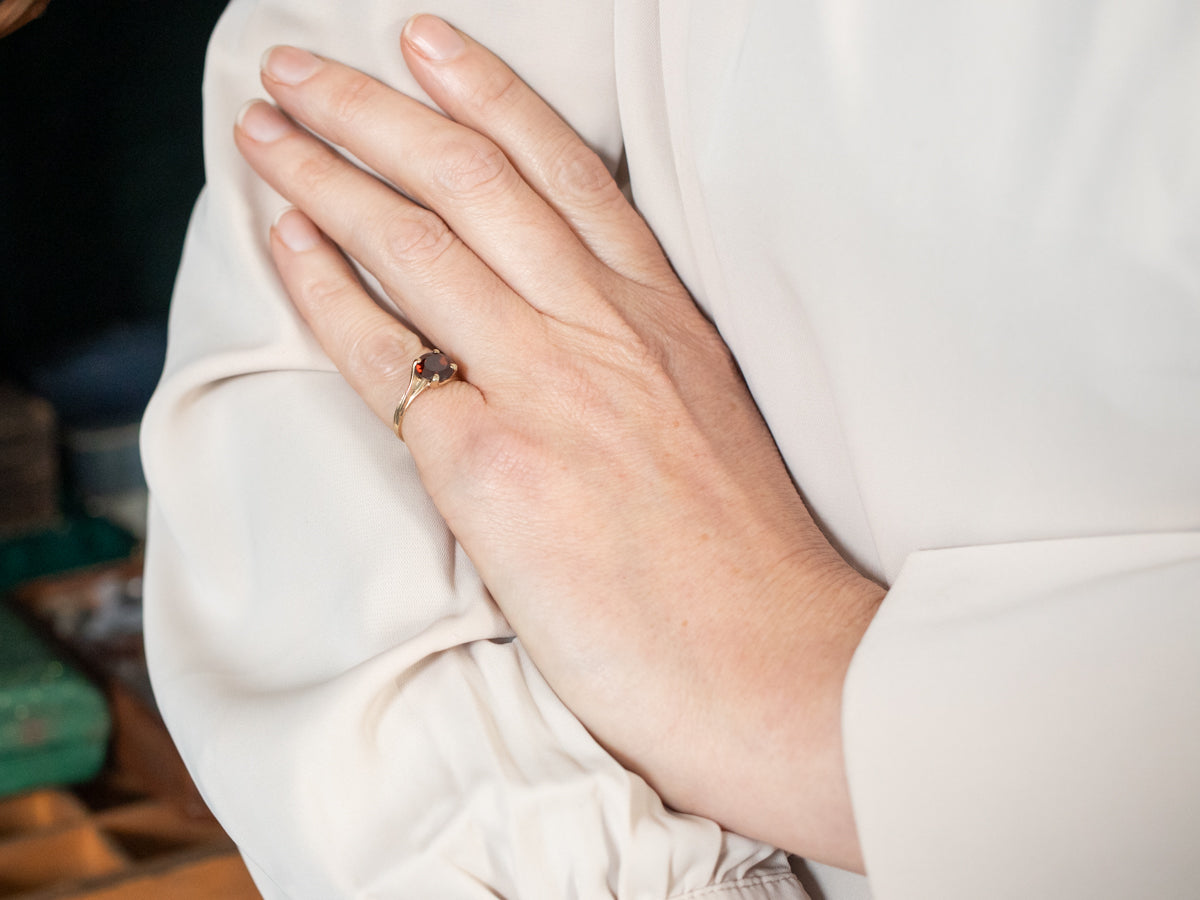 Este anillo es una pieza increíblemente clásica. Con un único granate solitario anidado en un engaste bypass de oro amarillo, esta pieza le da a cualquier look un toque de sofisticación y elegancia atemporal. El regalo perfecto para cualquier ocasión especial, esta pieza seguramente será apreciada.