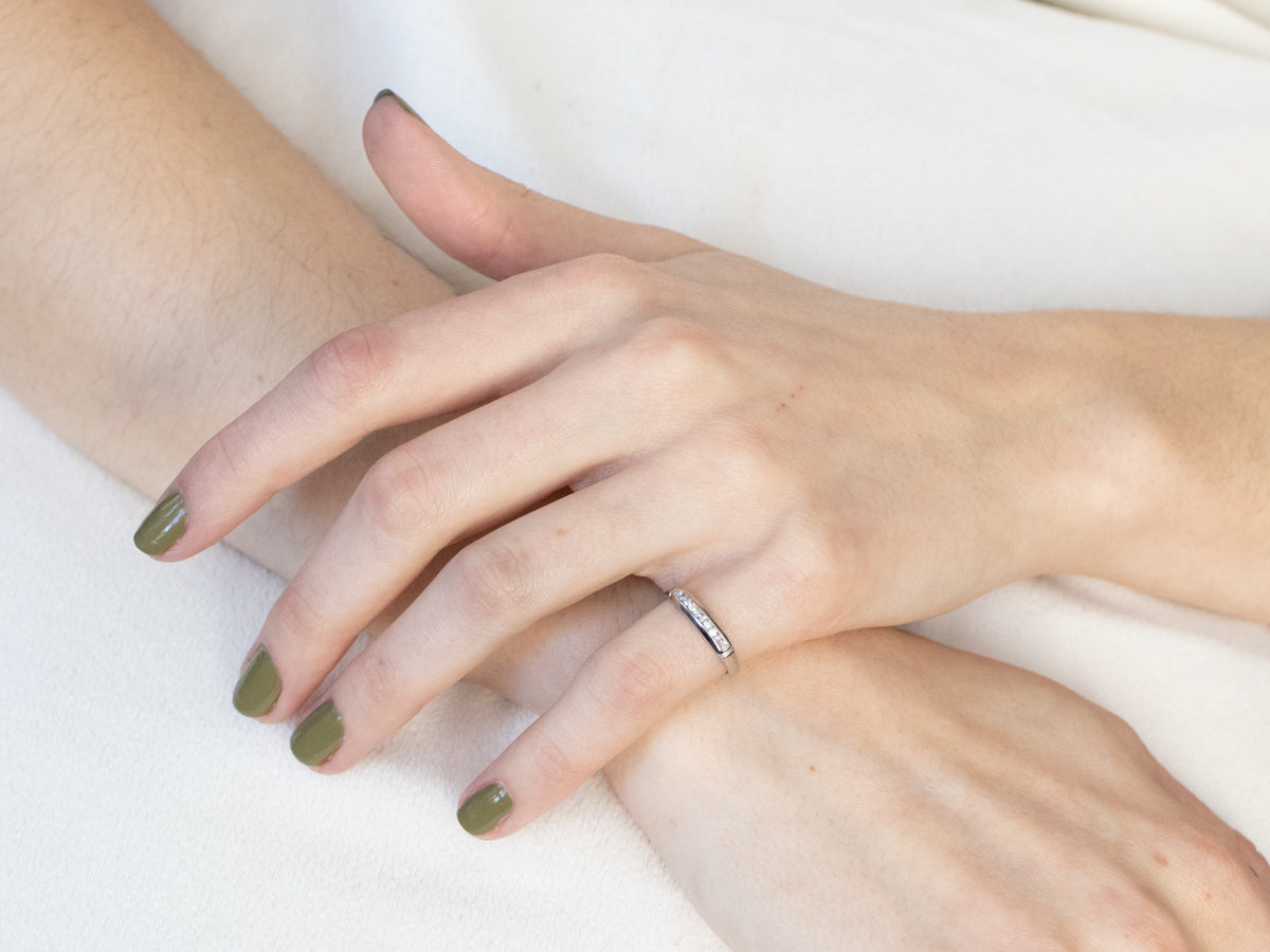 You cannot go wrong with the simplistic beauty of this channel set wedding band! Crafted from sleek white gold and set with ten sparkling diamonds, this ring is all about the sparkle! Perfect to wear alone or to accompany an engagement ring!