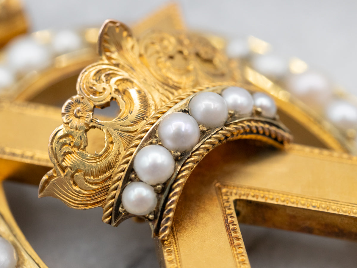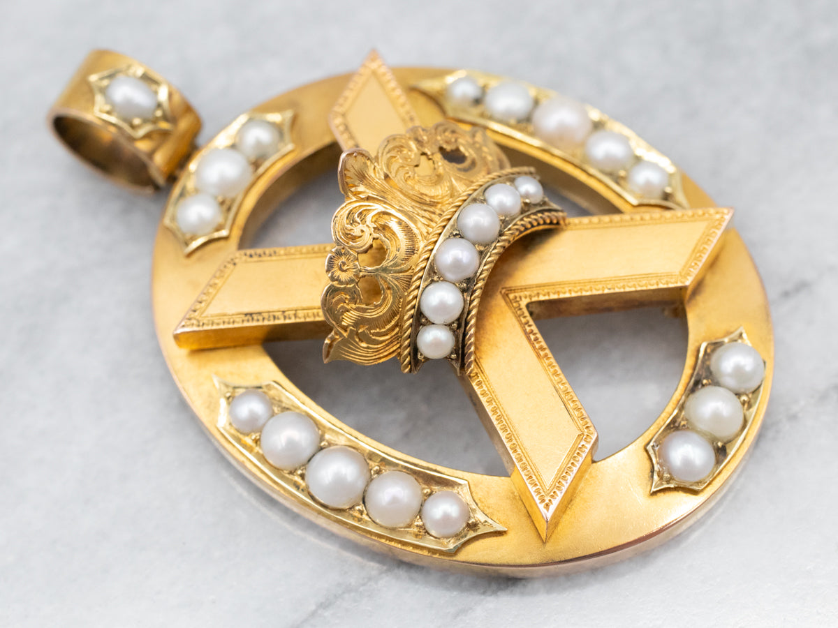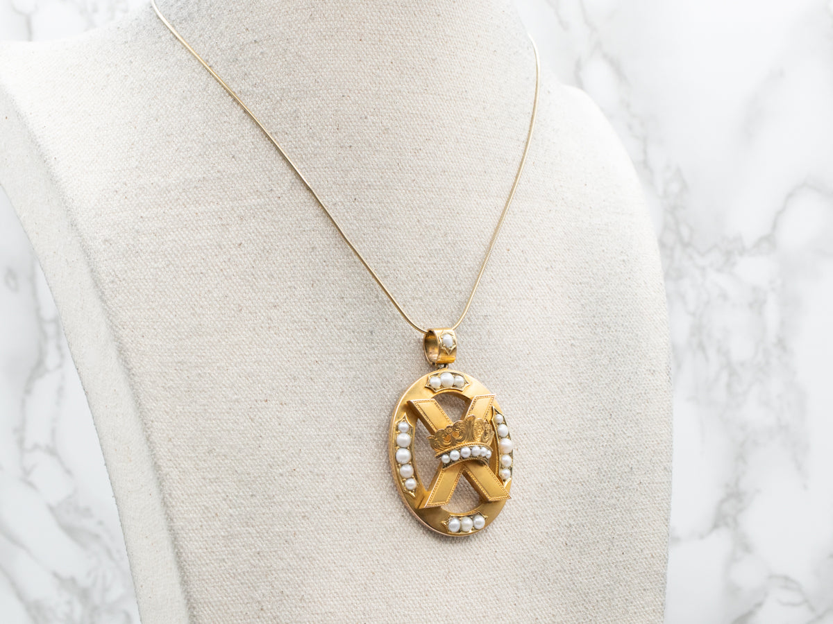 Colgante victoriano de perlas y corona de oro florecido