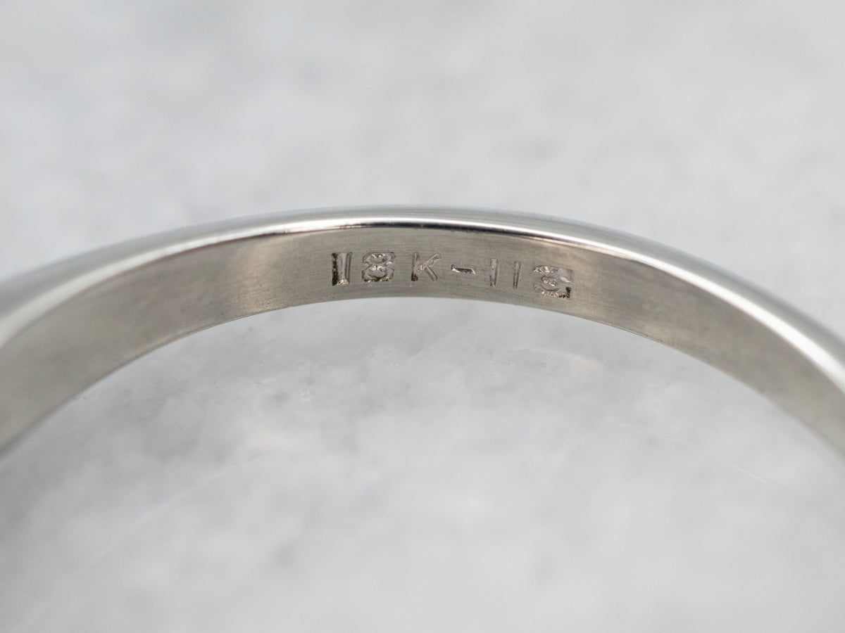 Metal: 18K White Gold Gem: Sapphire .665 Carats Gem Measurements: 4.6 mm, Square Ring Size: 5 Marks: "18K-113" Stamped on the inside band