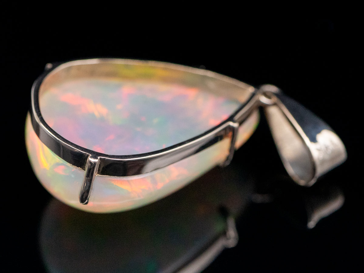 Metal: 14K White Gold Gem: Opal 12.45 Carats Gem Measurements: 15.0 x 22.4 mm, Pear Cut Measurements: 15 x 33 mm, with bail Marks: "14K" Stamped on the bail