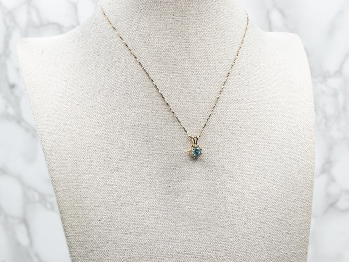 El circón azul fue la piedra de nacimiento original del mes de diciembre y fue una gema popular hasta la década de 1930, cuando se pensó que había sido extraída. Aunque todavía se encuentra en pequeñas cantidades en gemas pequeñas, las piedras grandes son muy raras en el mercado actual. Hemos colocado esta hermosa piedra preciosa en un engaste de botón de oro pulido, ¡un montaje perfecto para esta hermosa piedra preciosa brillante en tonos helados!