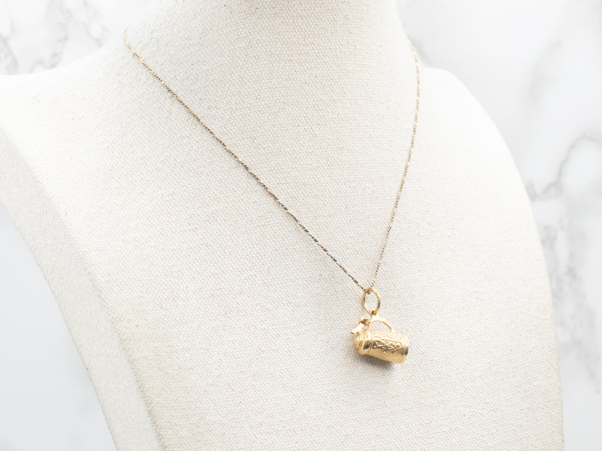 This beer stein charm is full of wonderful detail, despite its small size! Ornately patterned with floral motifs, this charm even has a hinged lid that can be opened and closed!