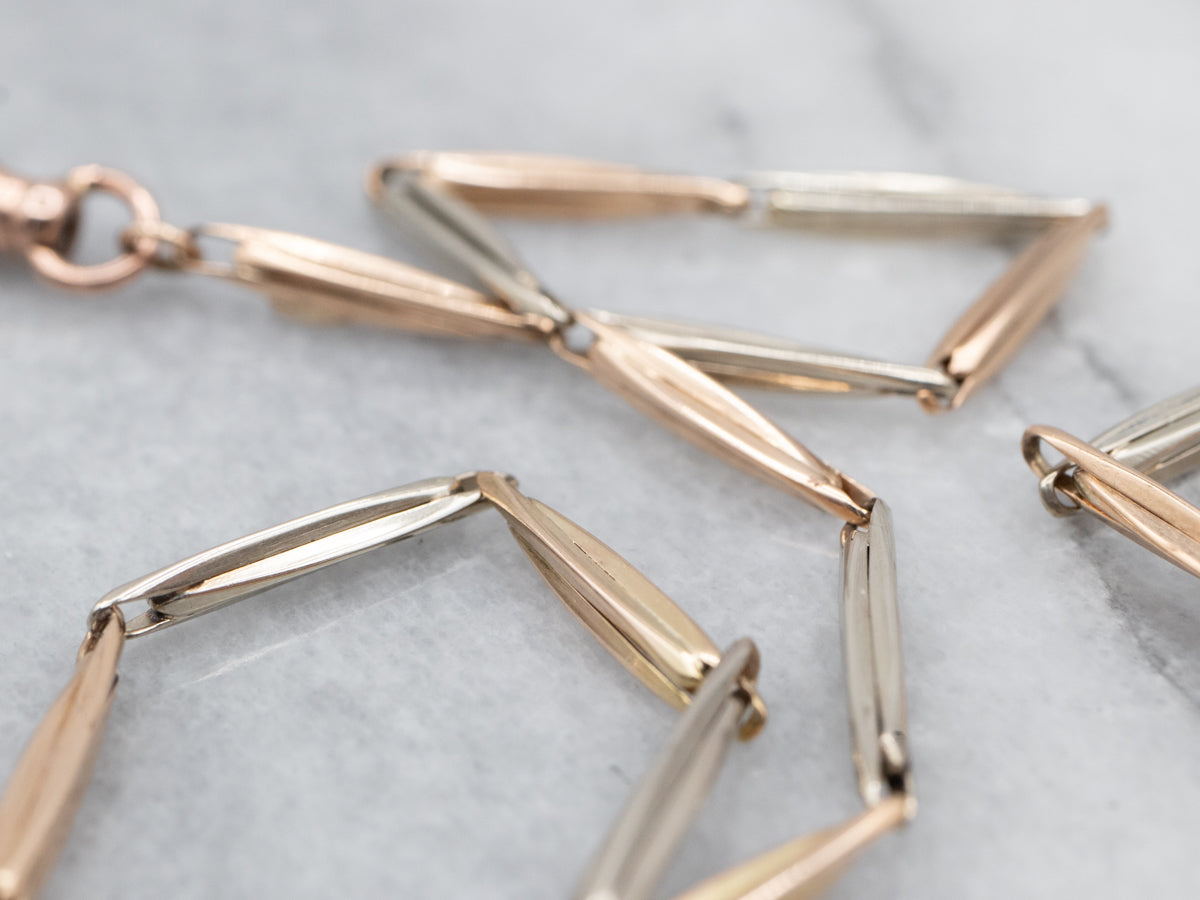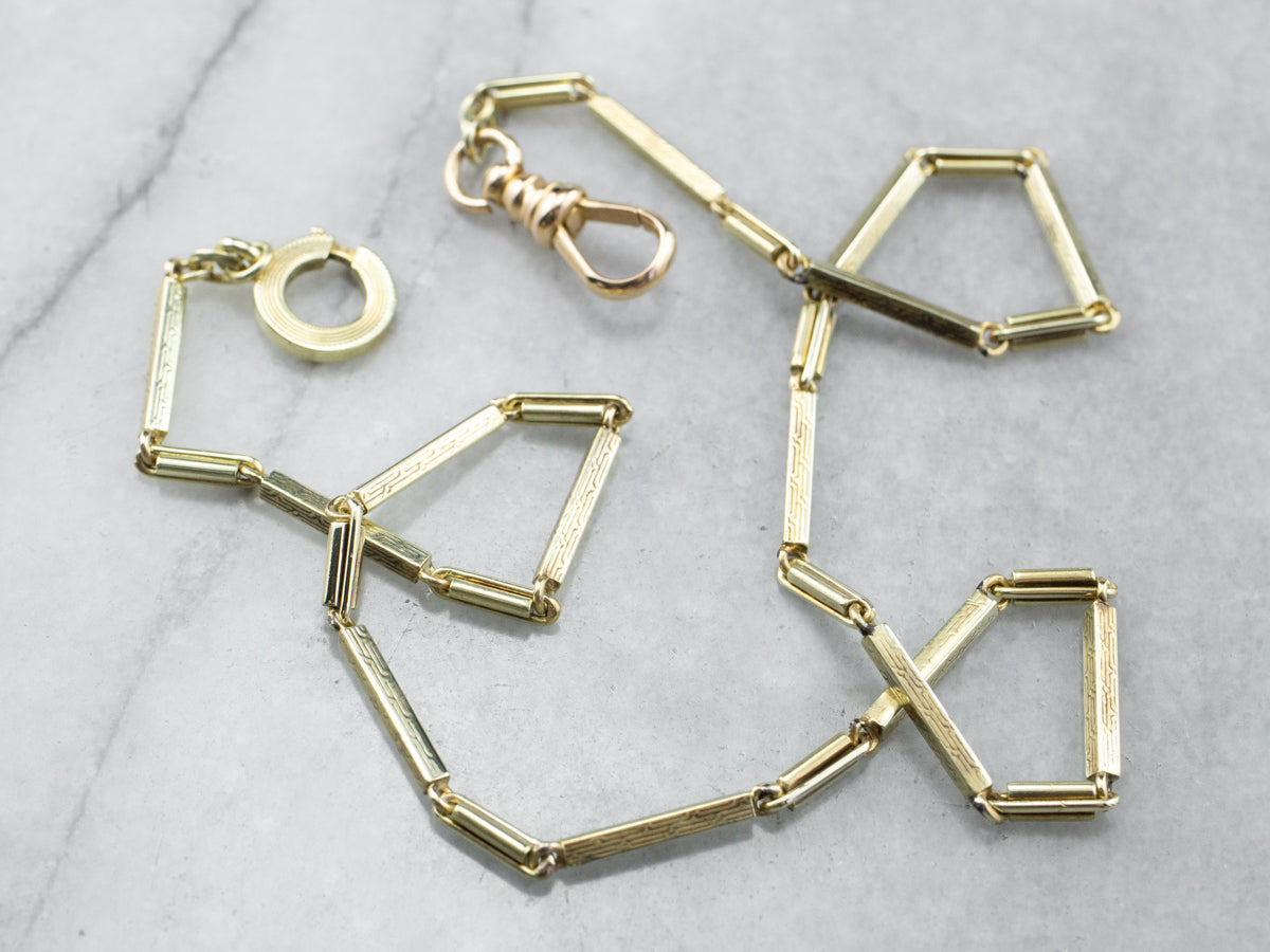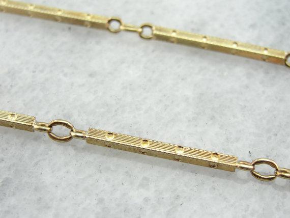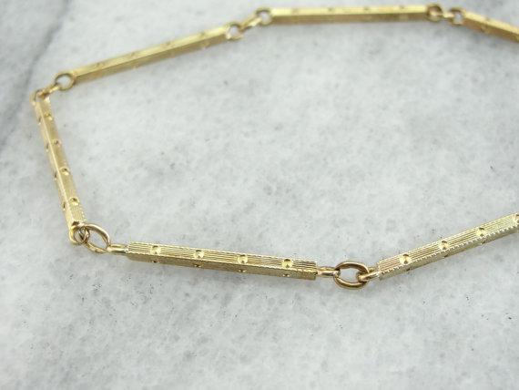Esta cadena vintage está en excelentes condiciones, con eslabones de barra texturizados y cierres que se mueven suavemente. La artesanía es magnífica y cada pieza forma una pequeña obra de arte.