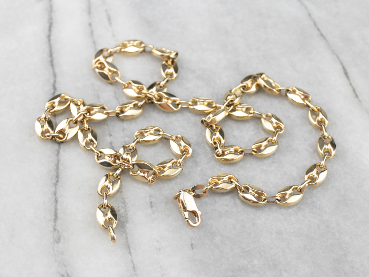 Metal: 14K Yellow Gold Width of Chain: 3.3 mm Length of Chain: 17 Inches Marks: "585" Stamped on the clasp