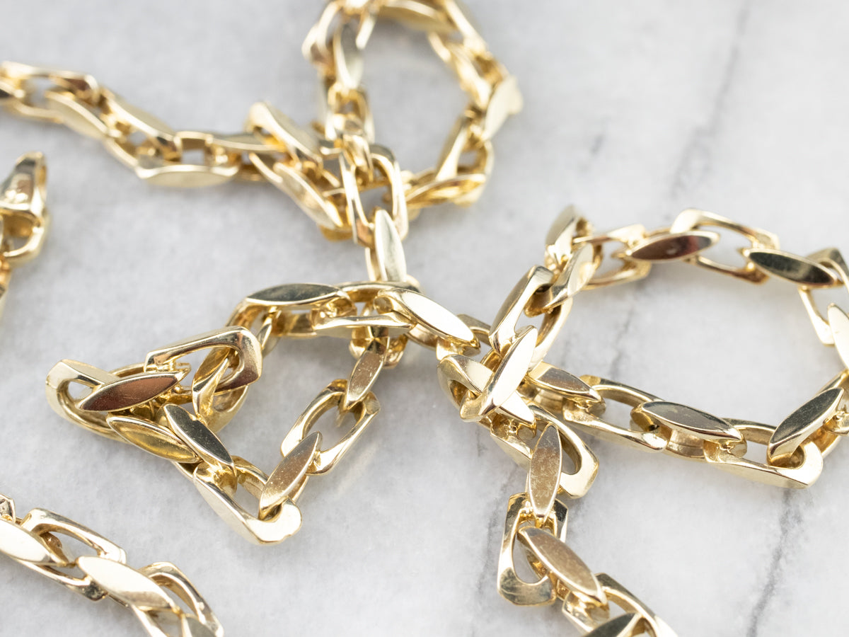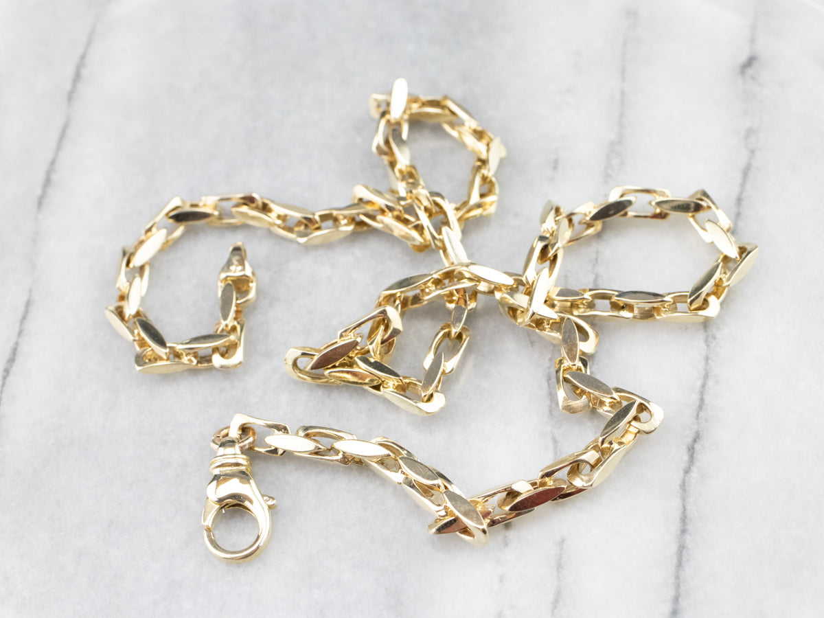 This anchor chain has a lovely presence around the neck! Each link is sturdy and well-polished, shining brightly in 14 karat gold.
