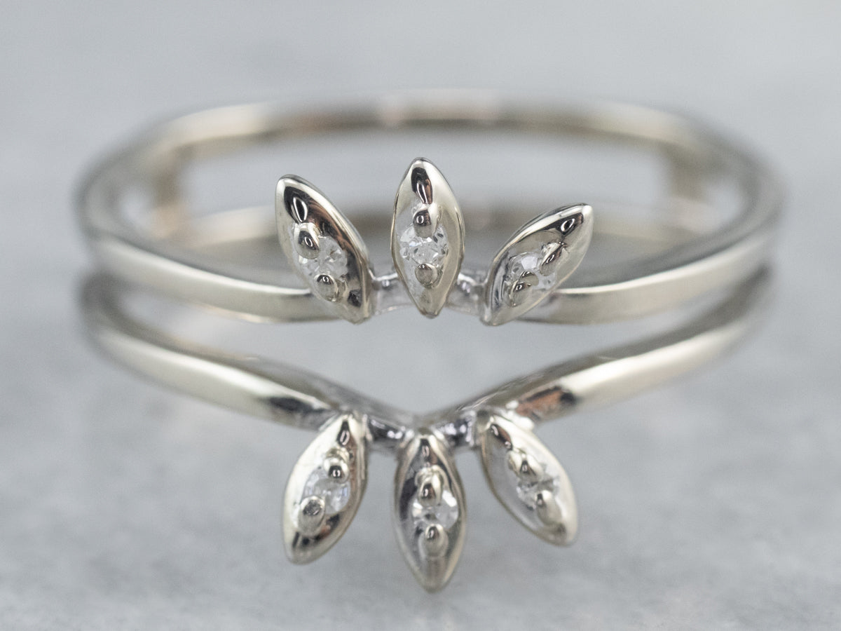 Crafted of bright gold and glittering diamonds, this vintage ring has a classic feel and has a lovely, refined profile on the finger. Open in the center, this can be set with a solitaire gemstone ring of any color to create a wonderful frame for a simple ring.