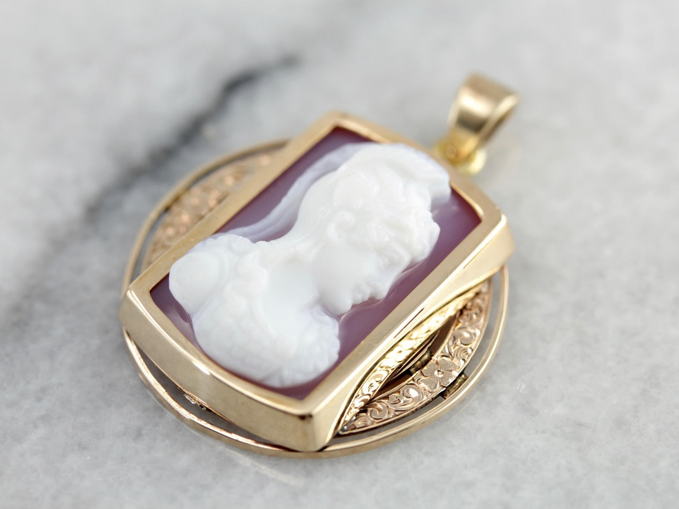 Antique Hardstone Cameo Gold Pendant