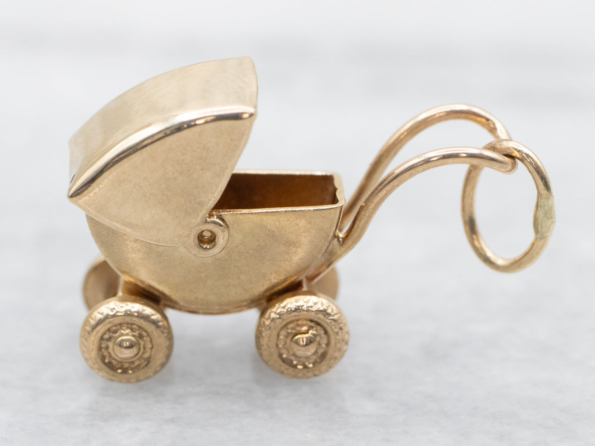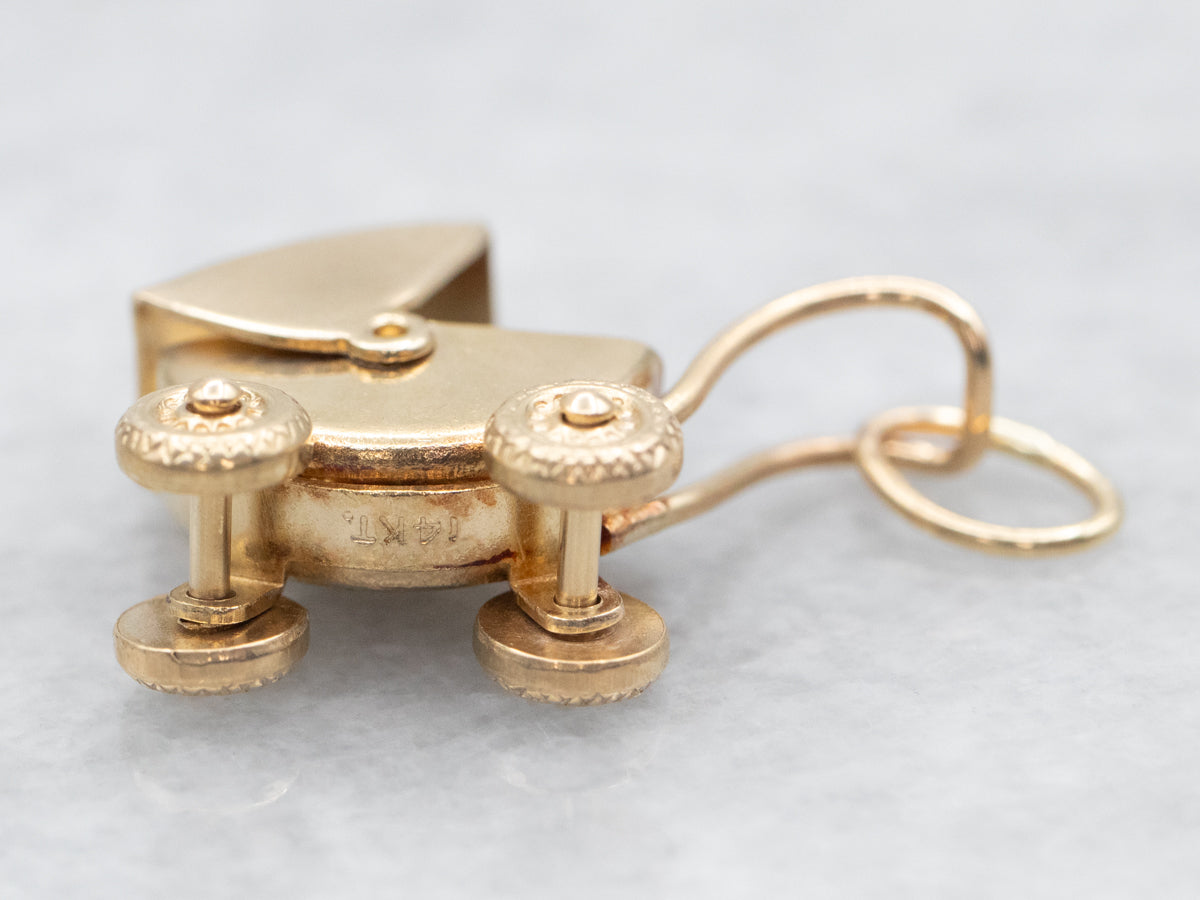Este dije de cochecito de bebé en oro amarillo aporta un toque de fantasía a cualquier conjunto. ¡Perfecto para nuevas mamás o cualquiera que busque agregar un toque divertido a su colección de joyas!