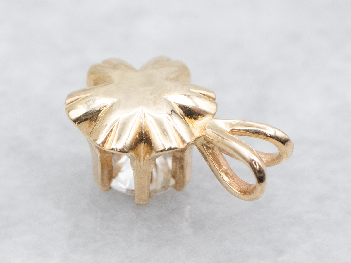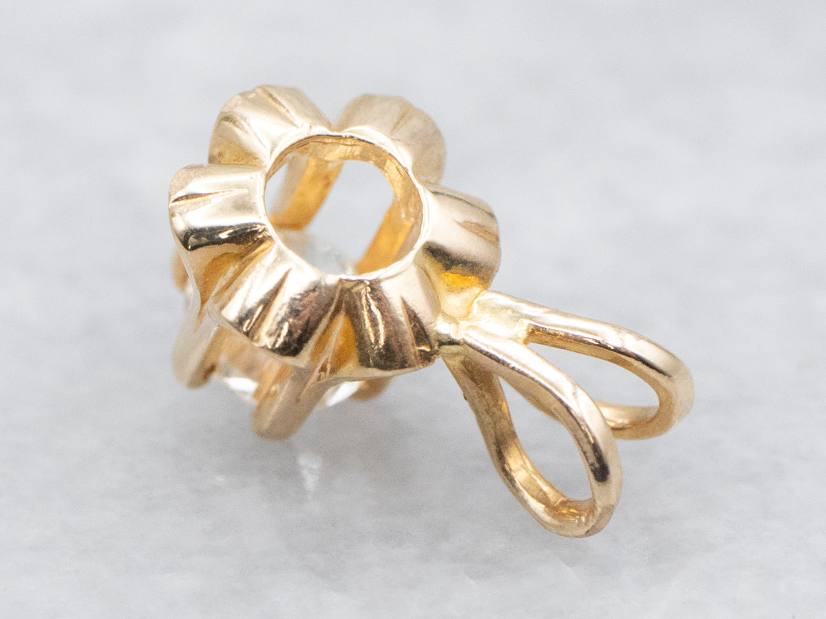 This diamond is bursting with light! We chose a vintage buttercup mounting of yellow gold to perfectly frame this gorgeous gem. The scalloped undercarriage and tall prongs lift the stone up, reflecting plenty of light into the stone!