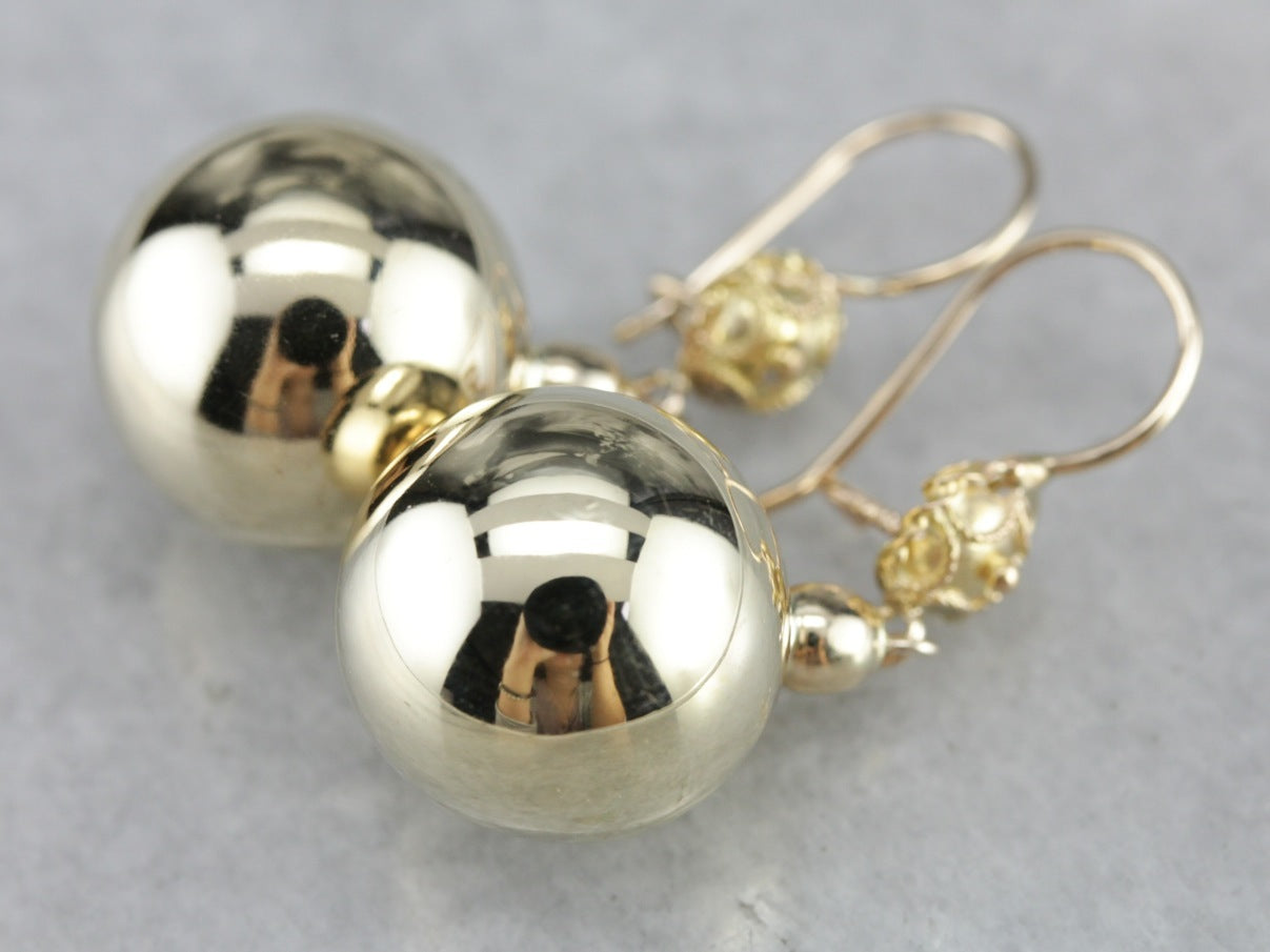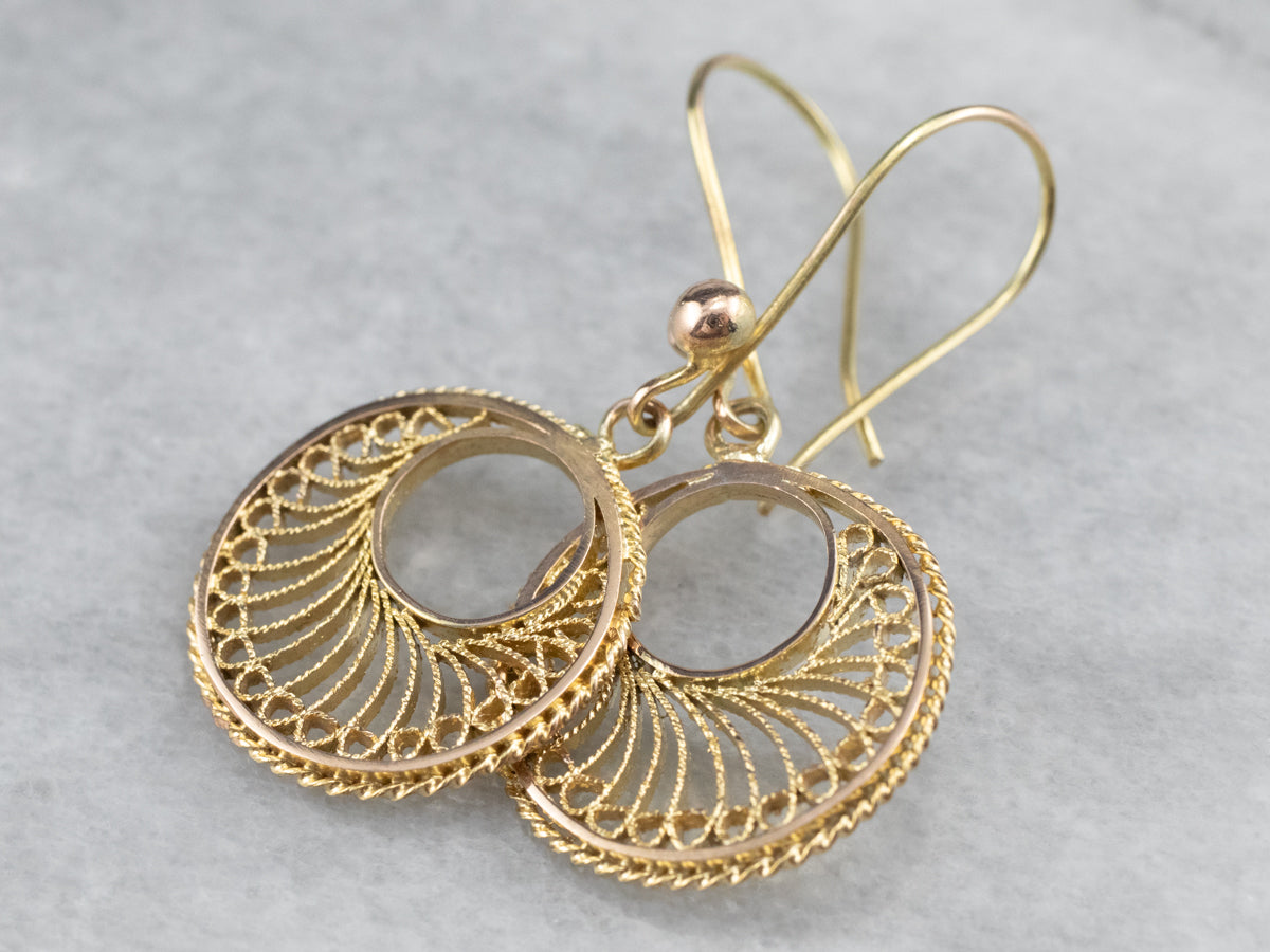 ¡Estos aretes colgantes de oro de 14 quilates de dos tonos captan la luz desde cualquier ángulo! El oro pulido brillante está coronado por oro blanco en el clásico estilo Cape Cod. Son lo suficientemente livianos para ser cómodos pero lo suficientemente sustanciales como para usarlos con el mejor vestido de noche.
