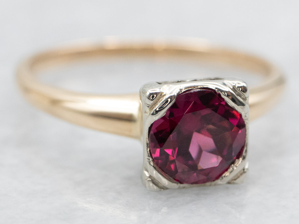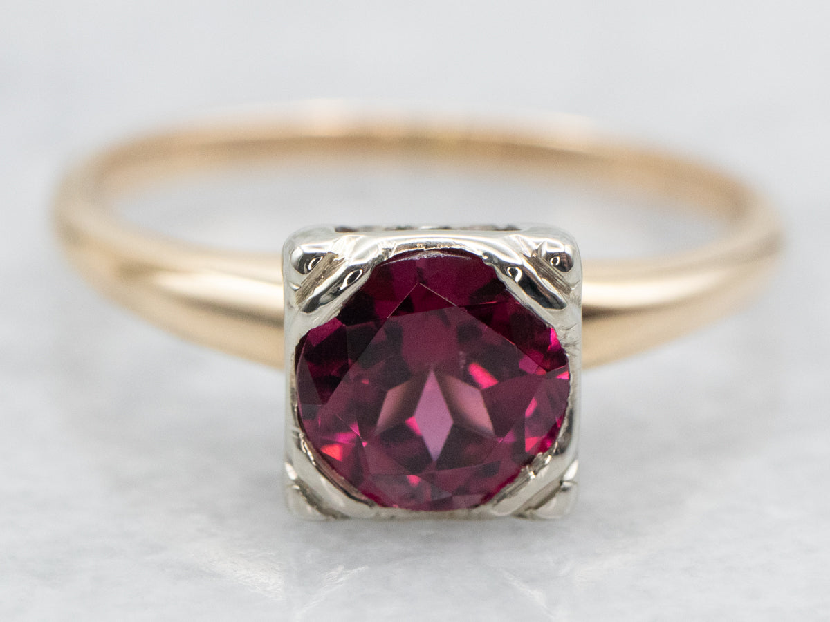 Crafted of yellow gold, this rhodolite garnet solitaire ring is perfect fort any occasion. The mesmerizing cushion cut rhodolite garnet is artfully accented by the split shank design, creating a sophisticated look.