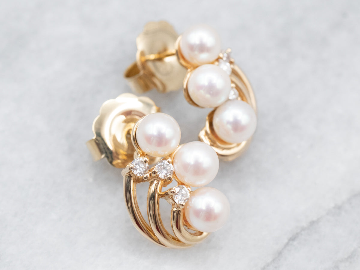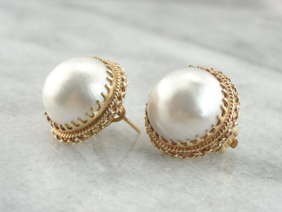 Diamonds and Mabe Pearl Earrings in Fine Gold