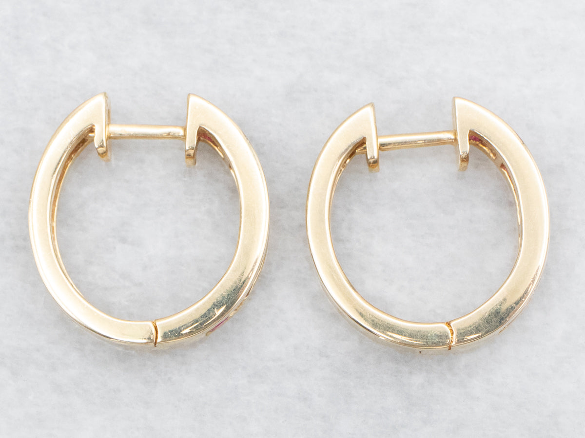 Crafted of highly polished yellow 14-Karat gold and encrusted with high-quality diamonds, these unique huggie hoops come with secure omega backs for everyday wear. Add a touch of luxury to your style with these earrings!