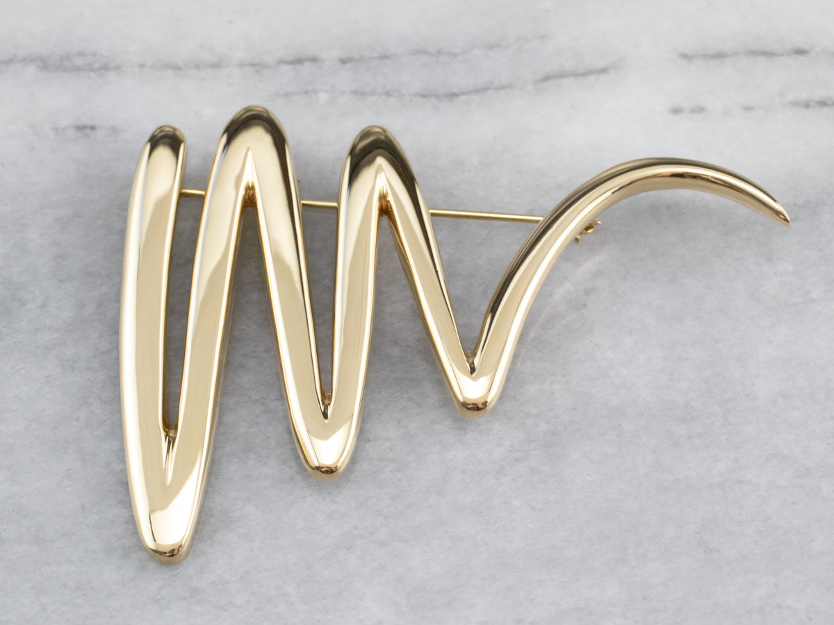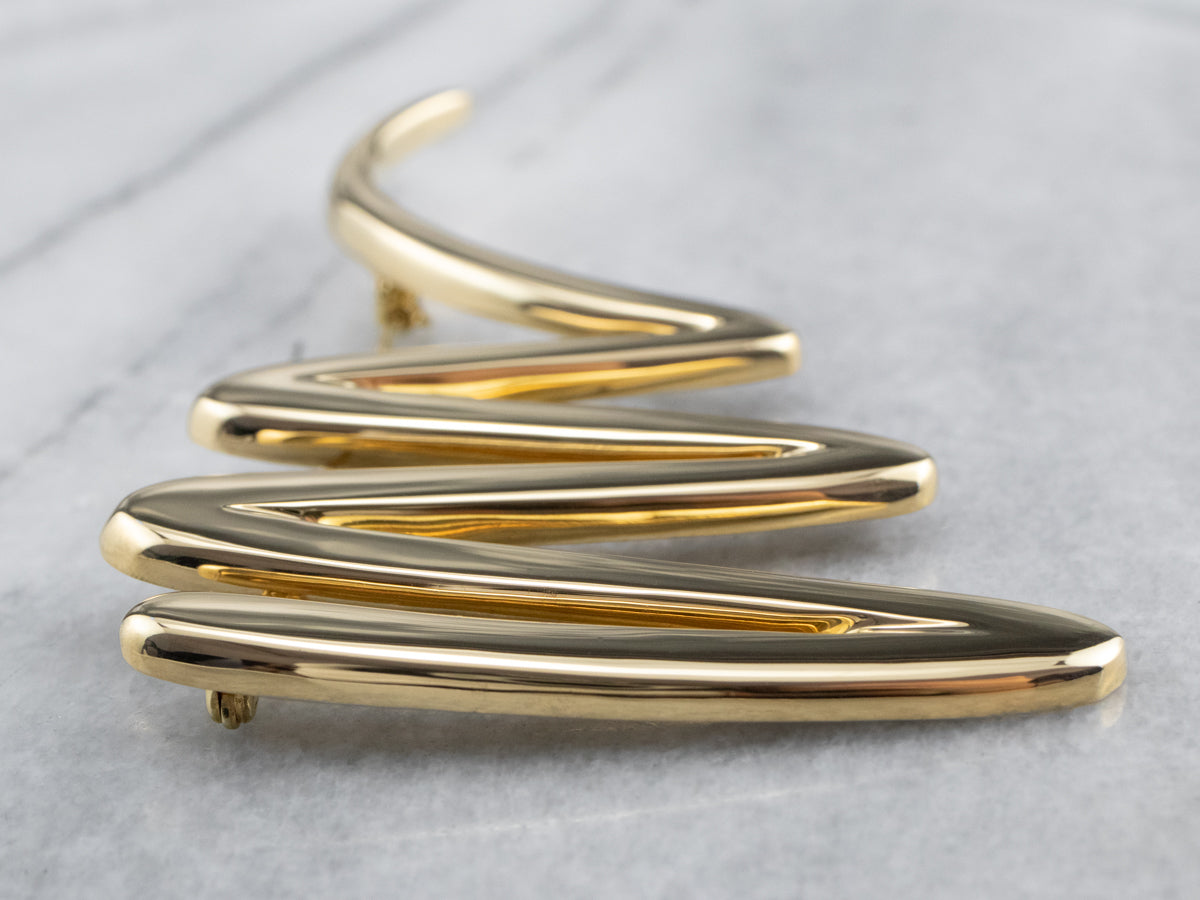 Striking and highly polished, this large 1980s Tiffany & Co Paloma Picasso zig-zag brooch is truly stunning. This 18 karat yellow gold pin is large in size and comes with its original case. The back of the piece is marked “1983 TIFFANY & CO. 18K PALOMA PICASSO” truly stunning!