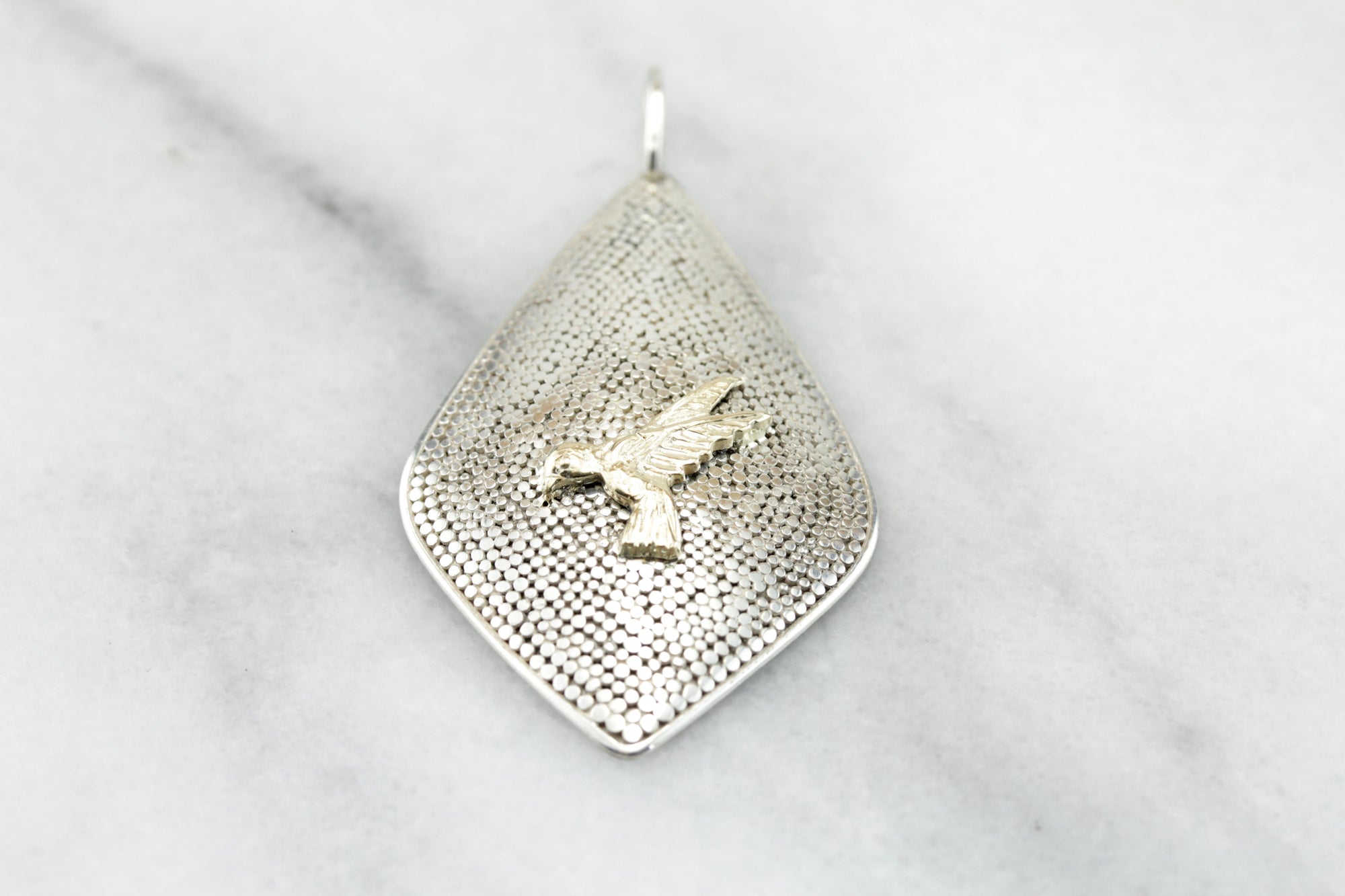Crafted from elements both new and antique, this one of a kind pendant is unisex, the perfect gift for any track and field runner. The use of silver and gold together makes this pendant versatile and easy to wear!