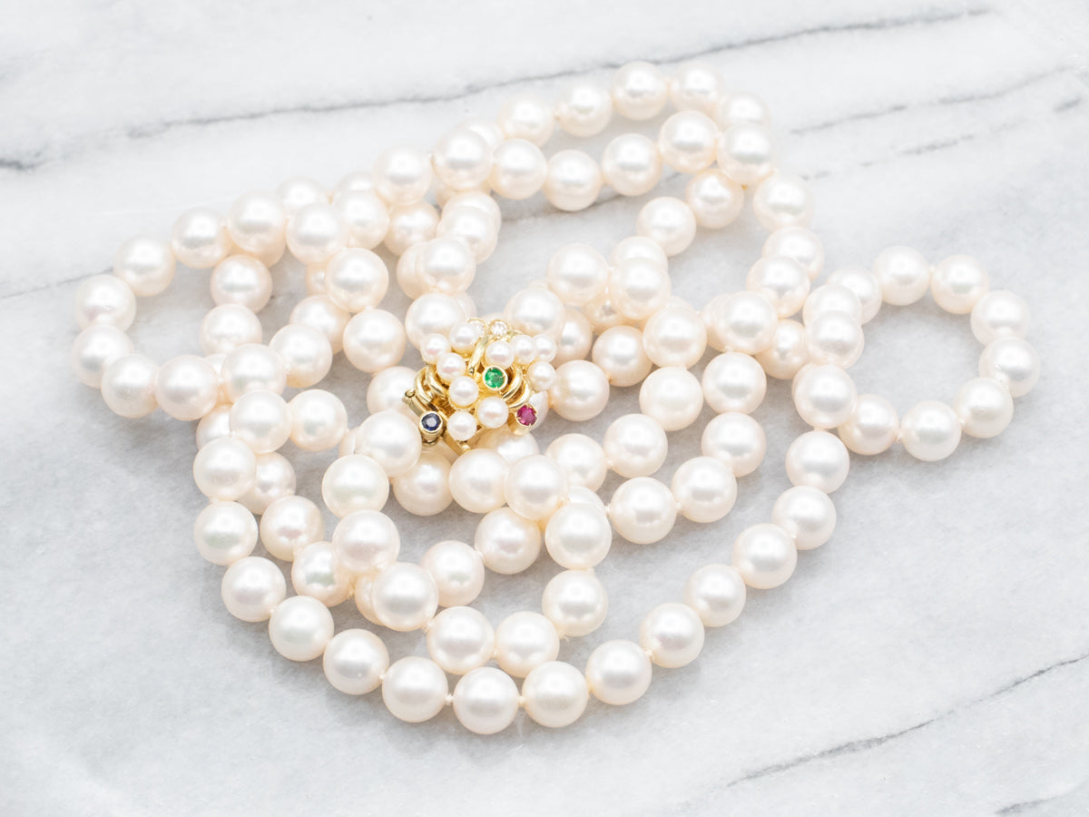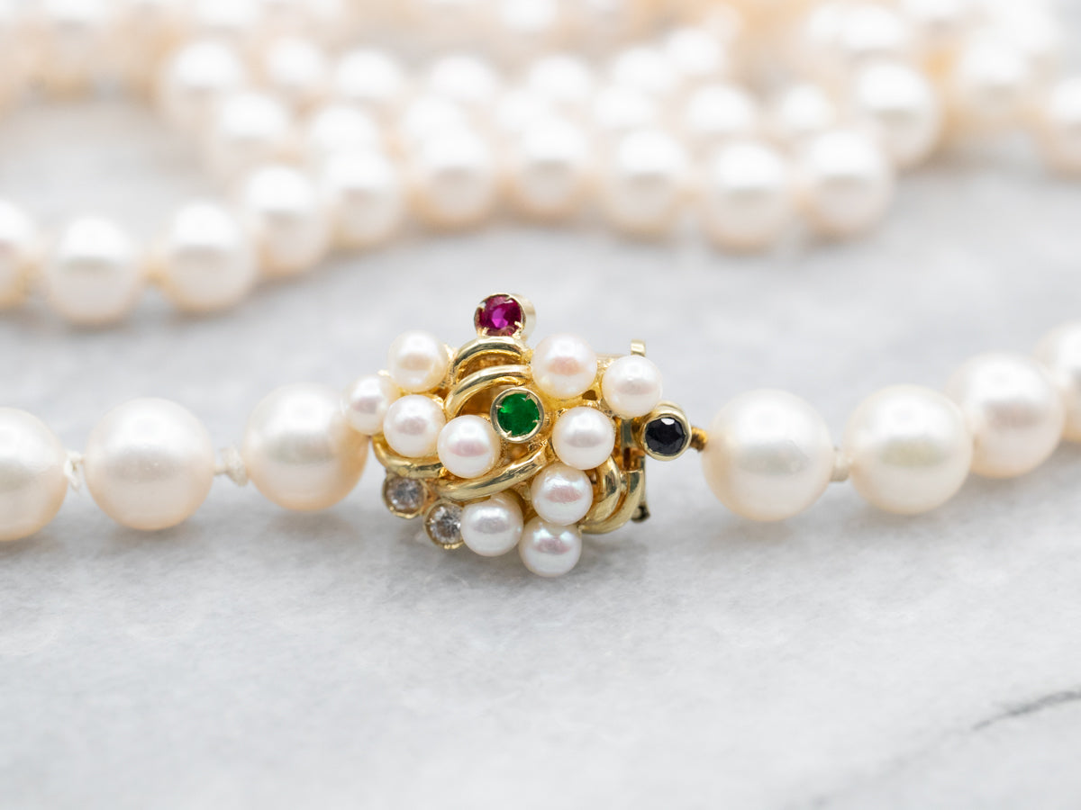 Graduated Saltwater Pearl Necklace with Diamond on Clasp