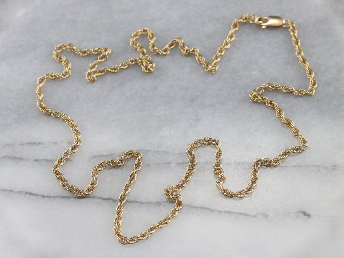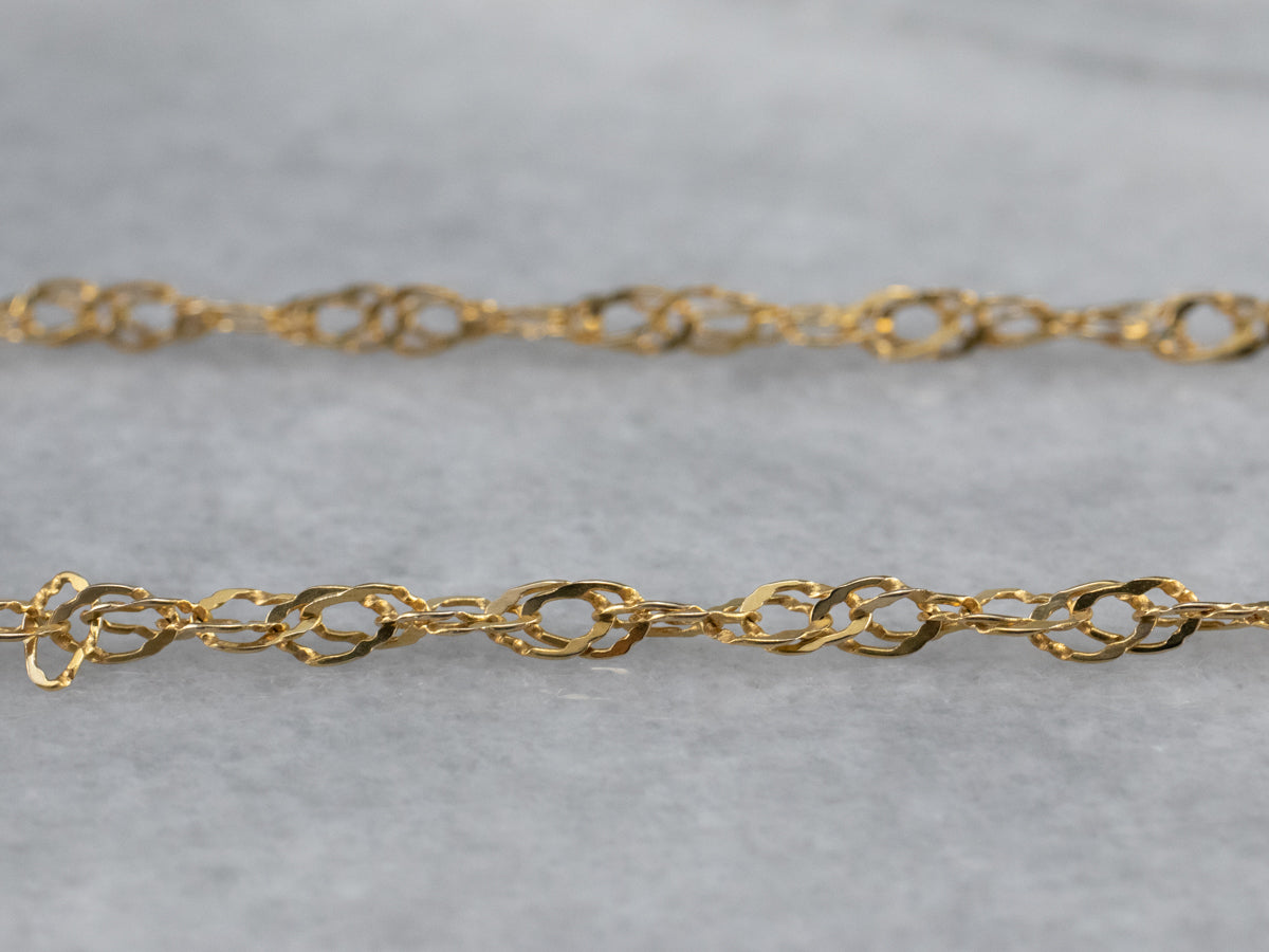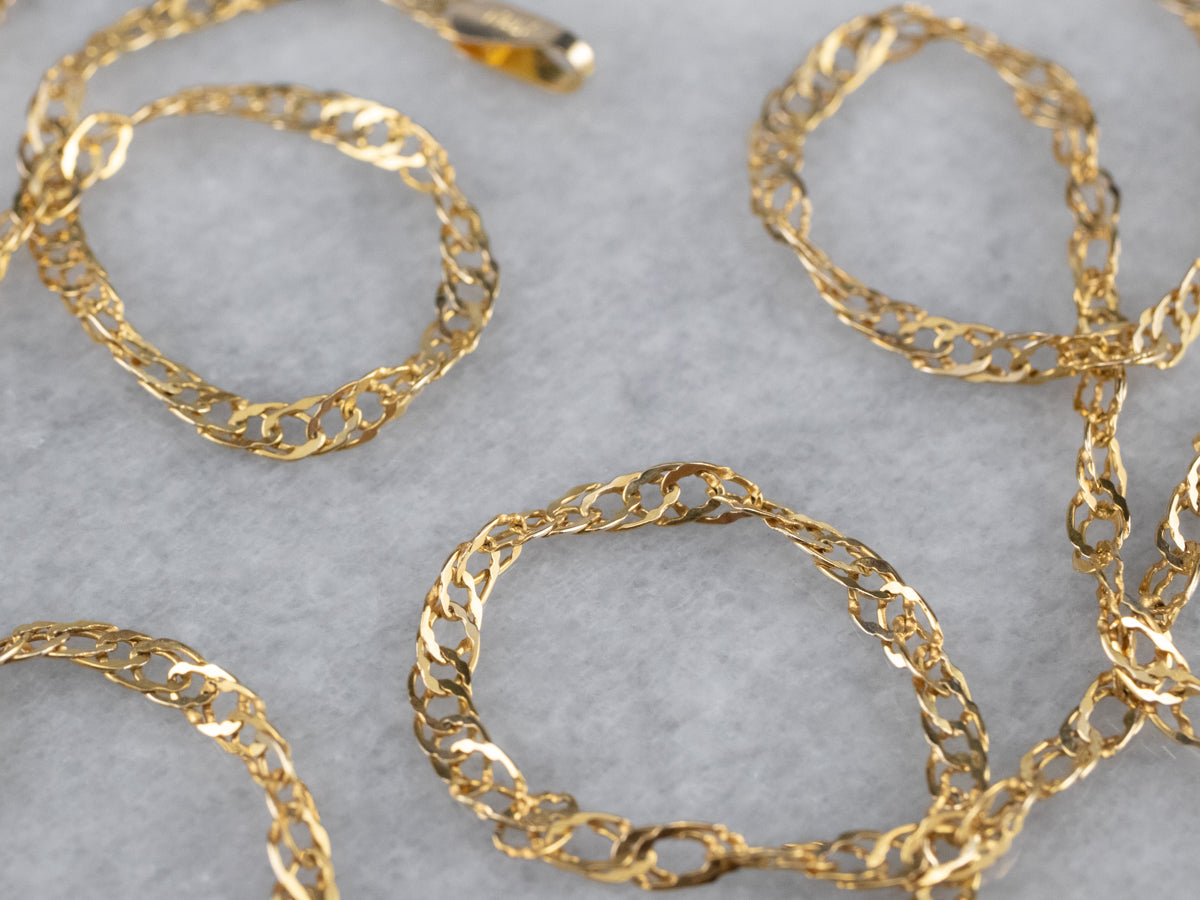 Esta elegante cadena dorada es un elemento básico del guardarropa de cualquier persona y tiene un toque diferente que le permite captar la luz y el brillo. Este delicado collar quedaría elegante solo o combinado con un colgante vintage.