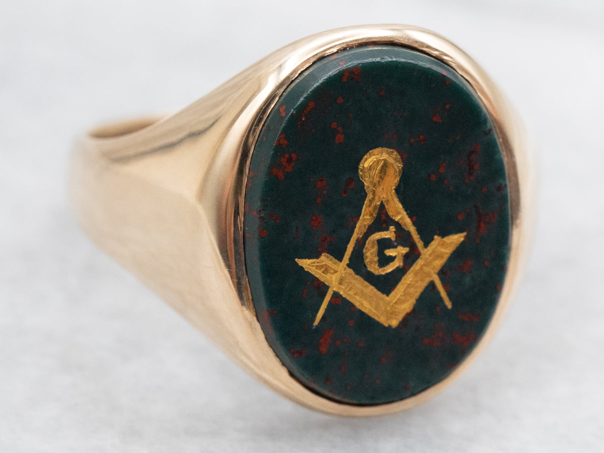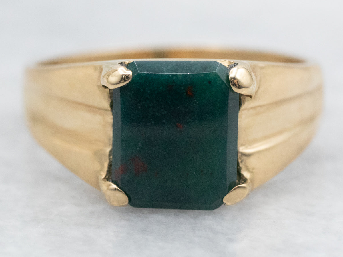 Metal: 14K Yellow Gold Gem: Bloodstone Gem Measurements: 19.6 x 14.8 mm, Oval Ring Size: 8.75