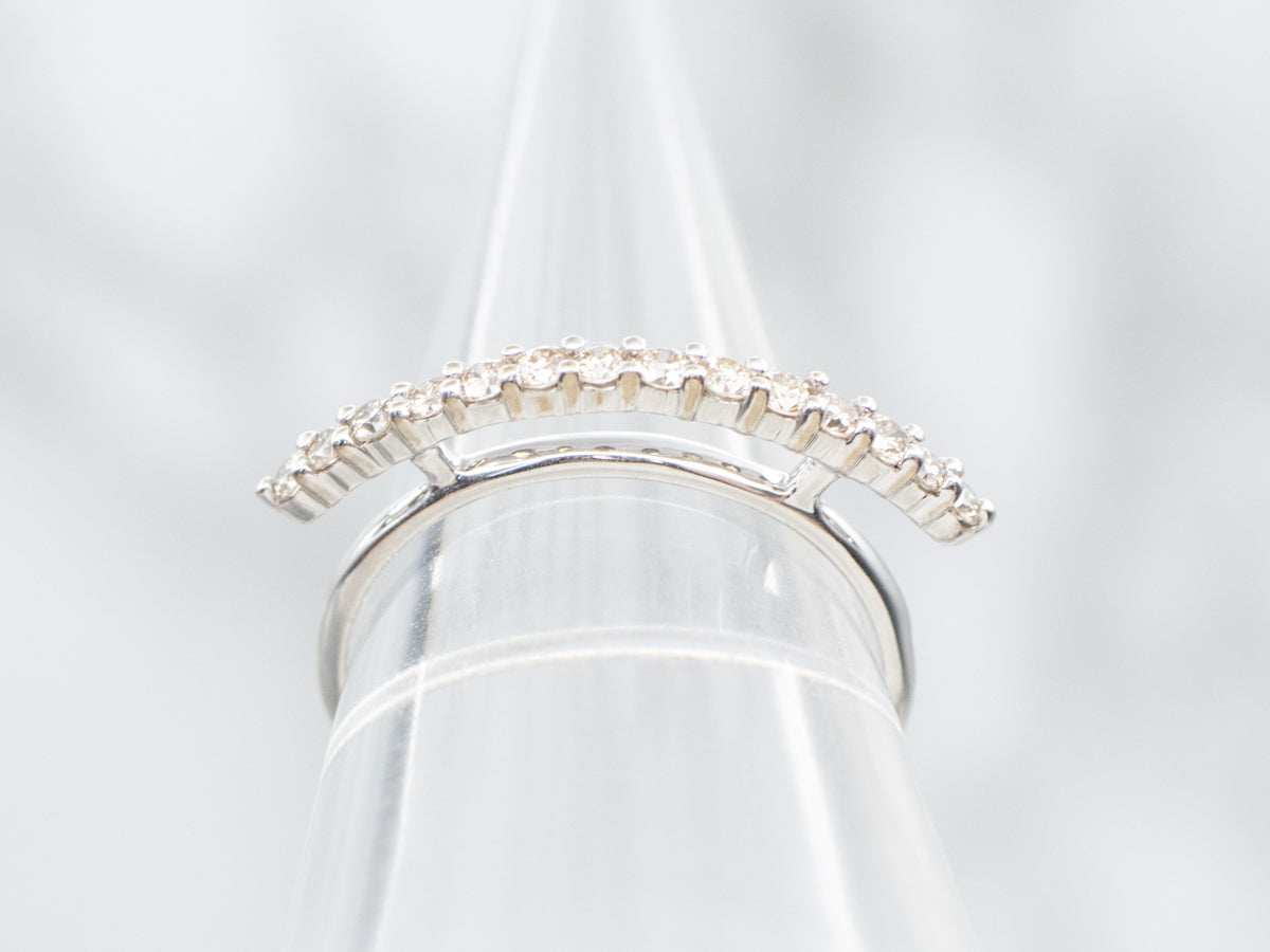 Esta banda está confeccionada en oro blanco pulido de 14 quilates y presenta una hilera de diamantes brillantes en engarce alto. ¡Este anillo quedaría genial como alianza de boda, alianza apilable o solo! Listo para el uso diario o para una ocasión especial.