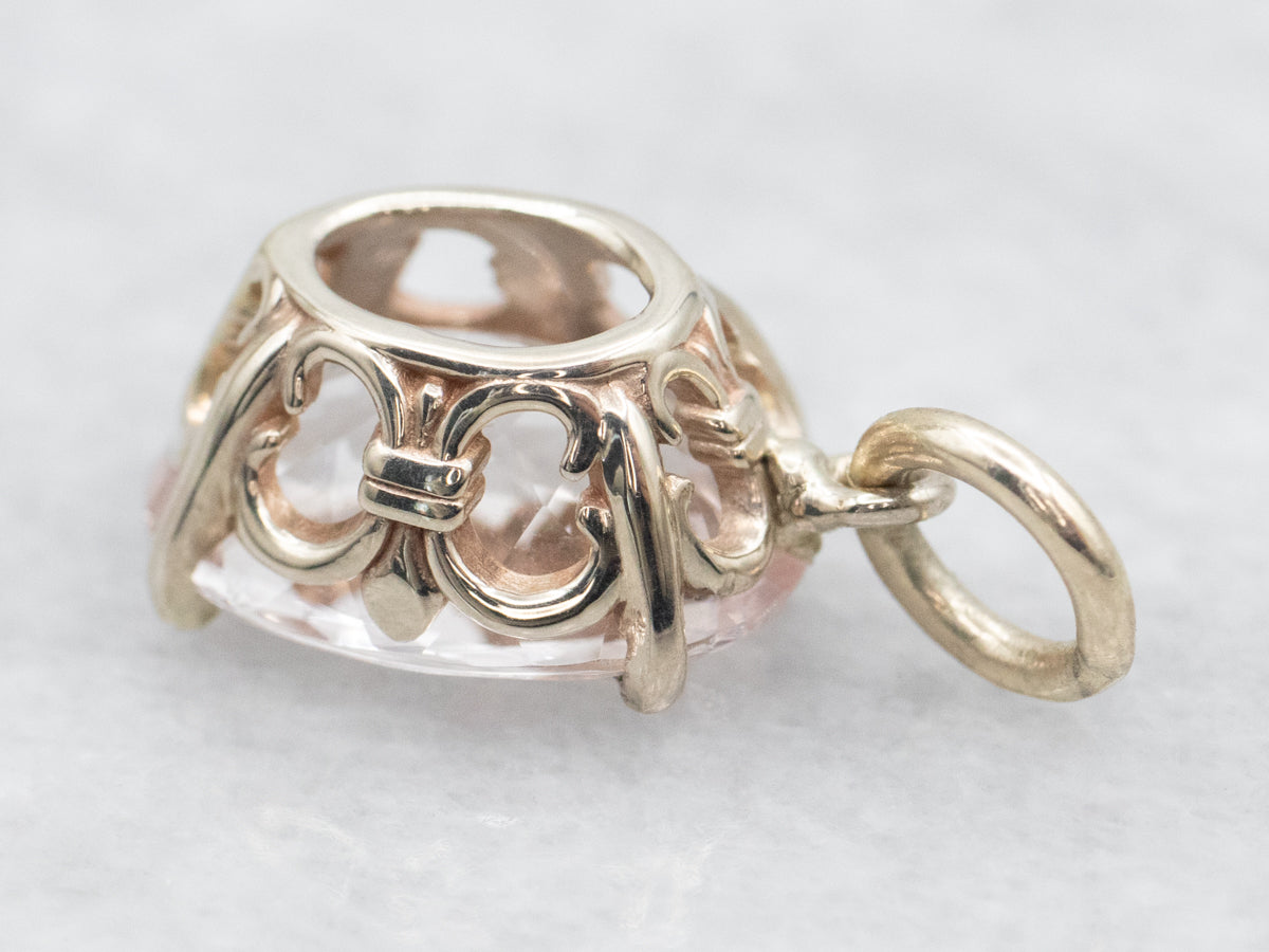 ¡Añade un toque de fantasía a tu colección de joyas con este colgante! Este encantador colgante solitario presenta una piedra preciosa de morganita con talla de pera, elegantemente engastada con una fianza de oro amarillo. ¡Perfecto para añadir un divertido toque de color a cualquier conjunto!