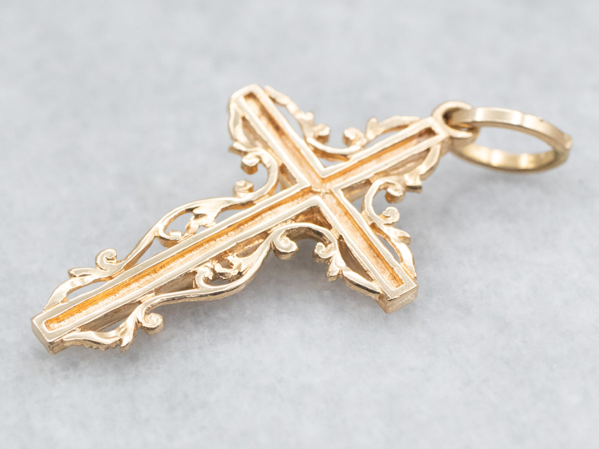 Crafted of lustrous yellow rose and white gold and with an intricately designed frame, this pendant features a classic crucifix, making it the perfect statement piece for any occasion.