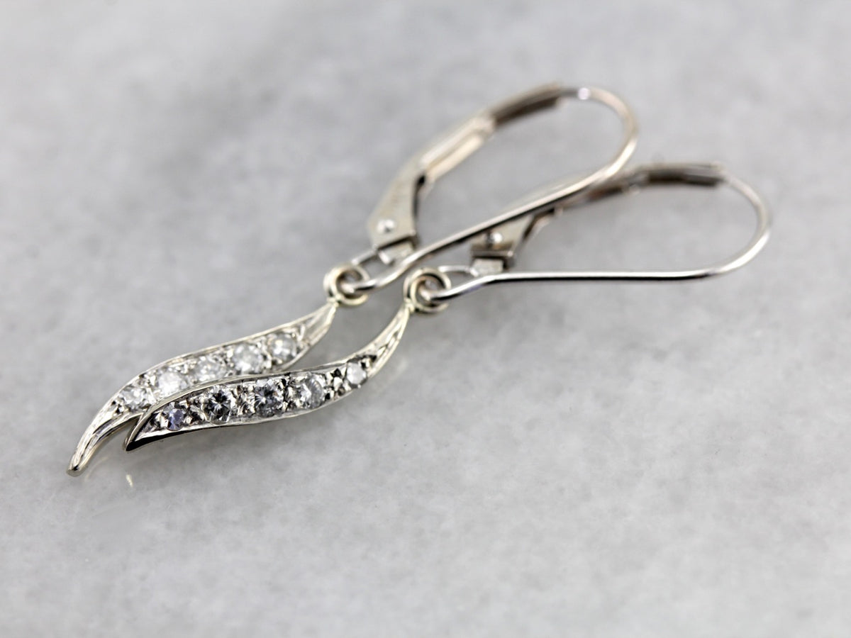 Absolutamente dulces, estos aretes fueron hechos a mano en nuestro estudio utilizando elementos empleados de diferentes épocas. Los cables son hallazgos nuevos y seguros que nunca se han utilizado. ¡Combinan perfectamente con las gotas blancas y su brillante incrustación de diamantes de alta calidad de principios de la Era Retro!