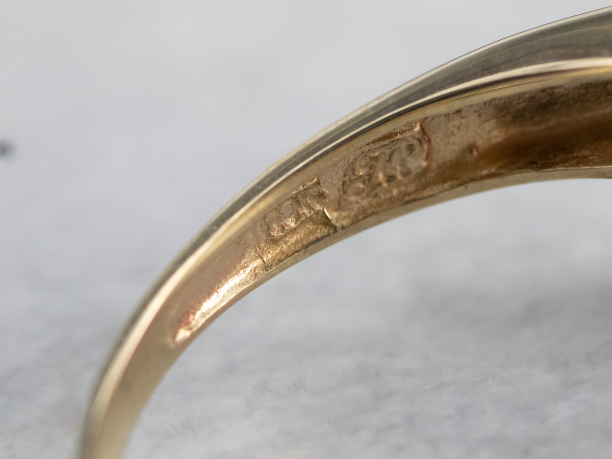 The tourmaline in this classic statement ring is marvelous! Generous in size, this gemstone is a juicy shade of cherry pink, full of deep vibrancy. The simple four prong setting in yellow gold sets off the tourmaline nicely!