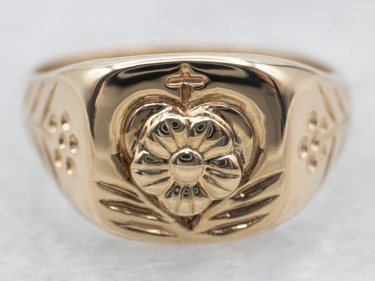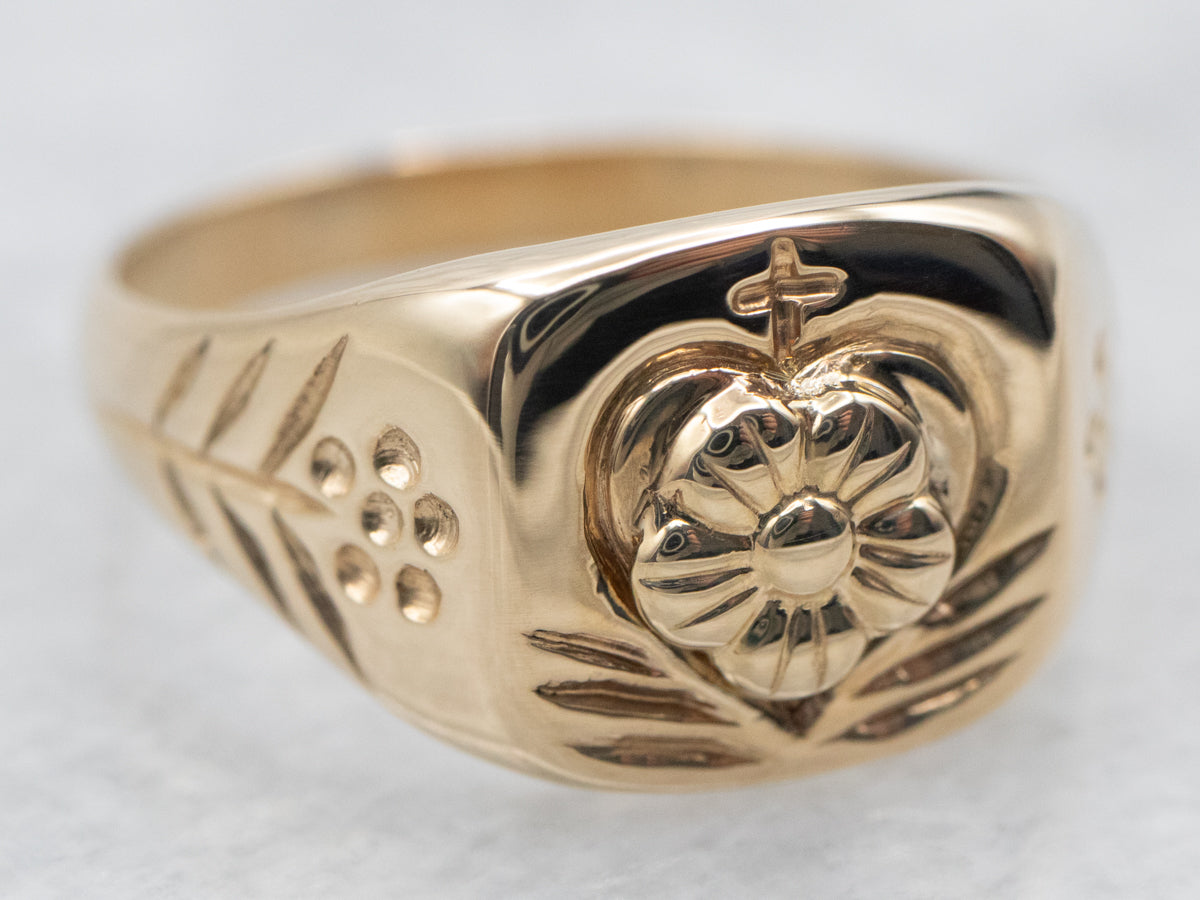 Metal: 10K Yellow Gold Top Measurements: 11.5 x 14.8 mm, Oval Ring Size: 8.75 Marks: "^" Stamped on the inside band