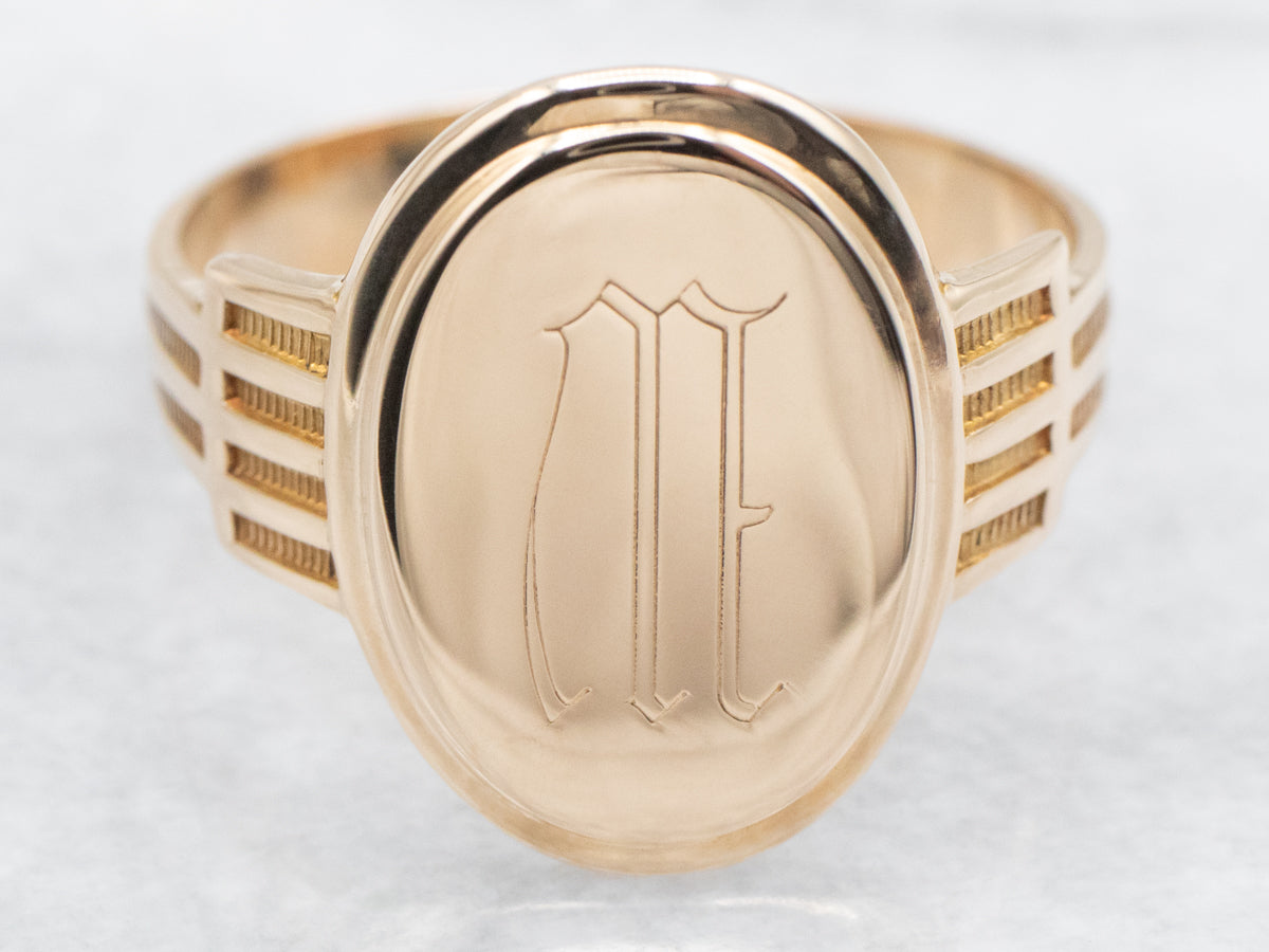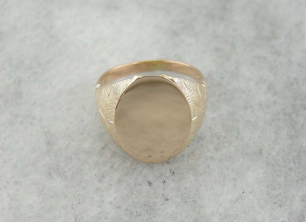 Get ready to add some personal flair to your style with this signet ring. This classic ring features a sleek, engravable oval top for a customizable touch. Perfect for adding a playful twist to any outfit!