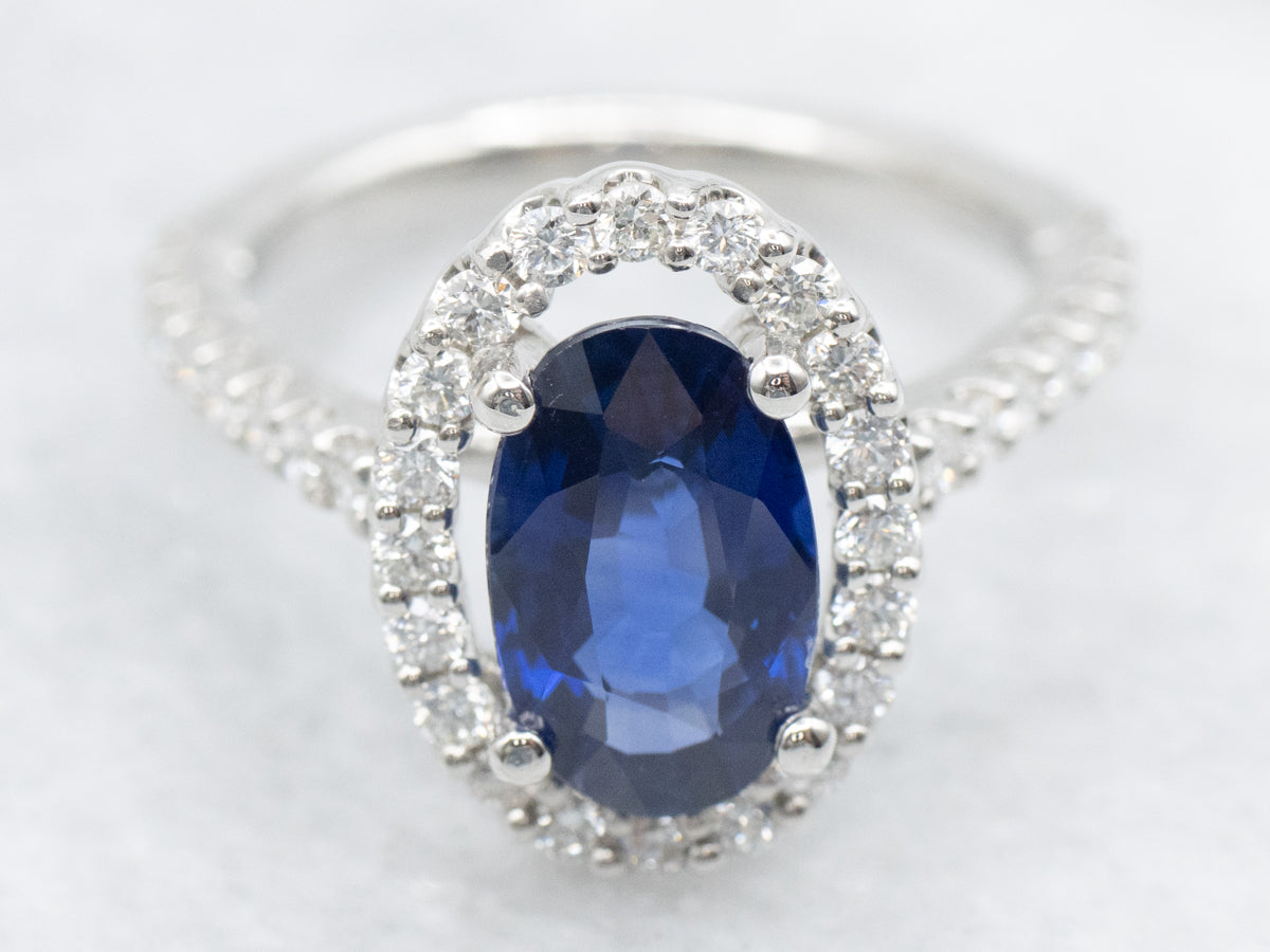 Stunning Platinum Sapphire and Diamond Halo Engagement Ring